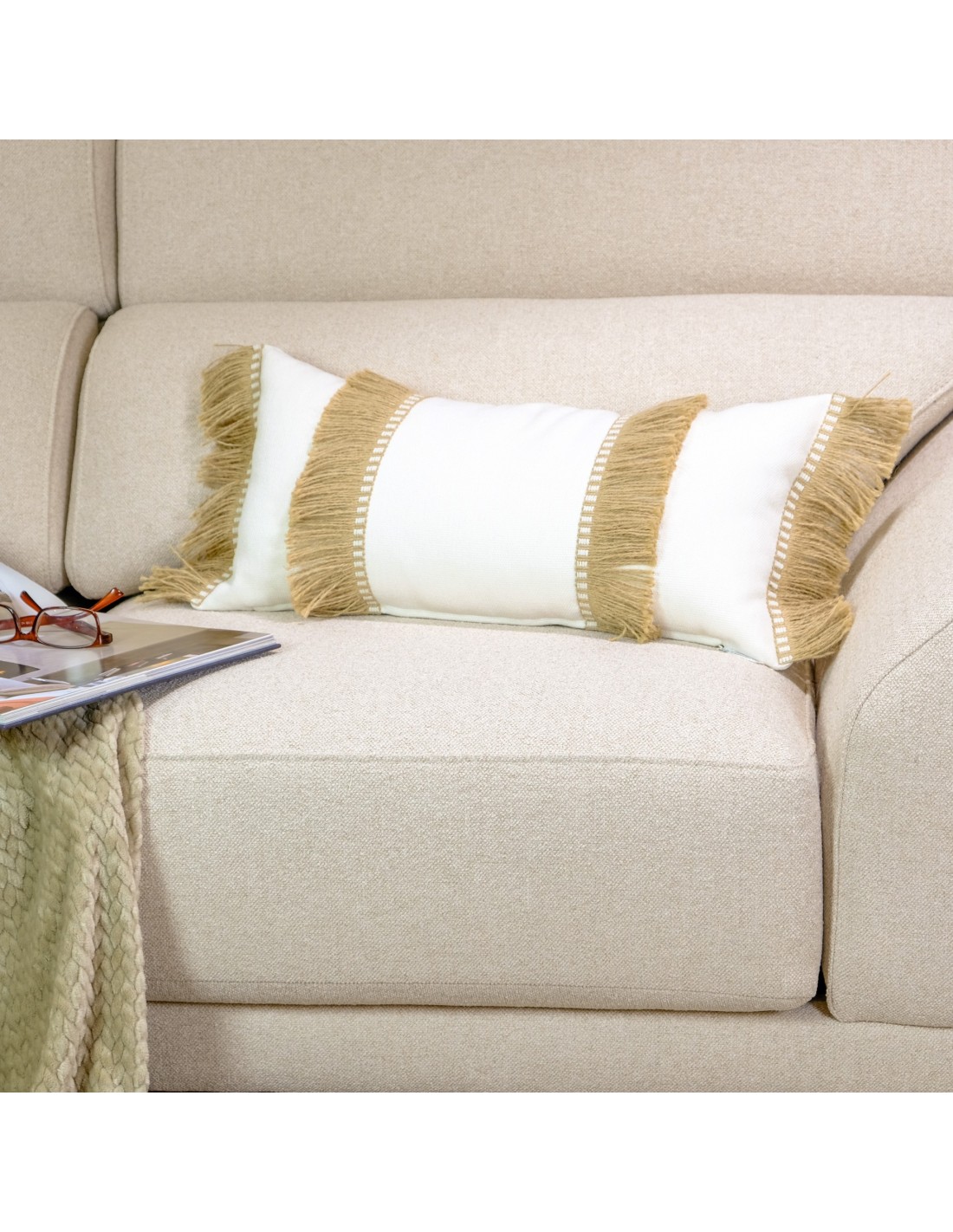 Cojín blanco roto flecos rafia 60x30, Relleno Premium incluido