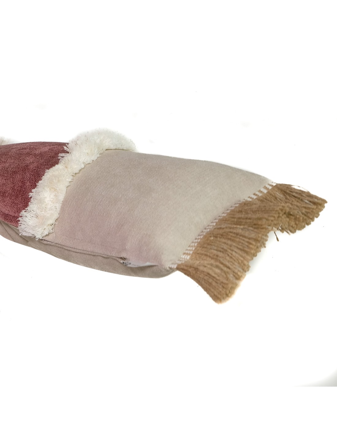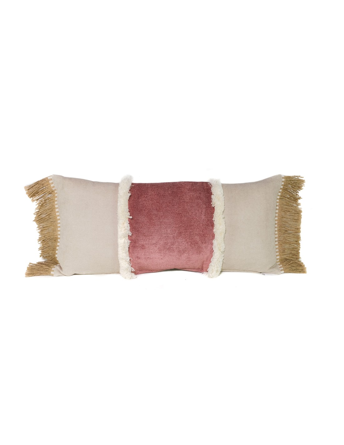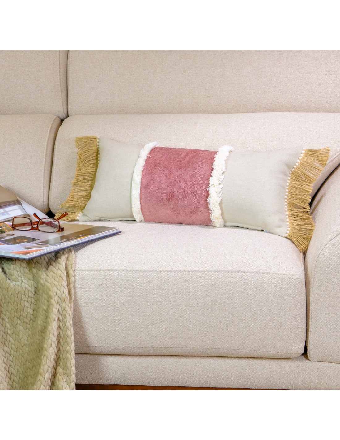 Cojín banda rosa fleco rafia con relleno premium 60x30