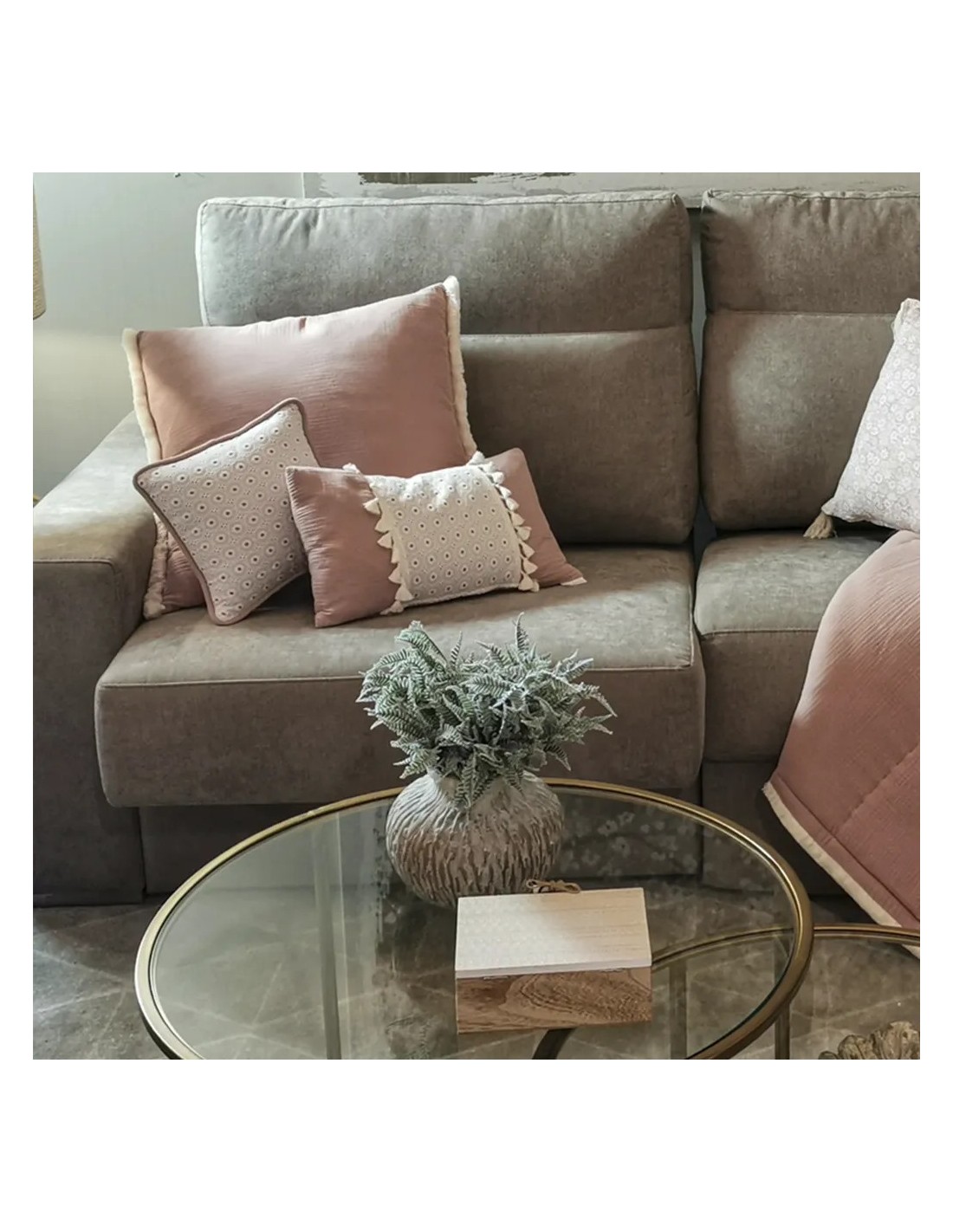 Cojín detalle tela voile rosa empolvado con relleno premium 35X35