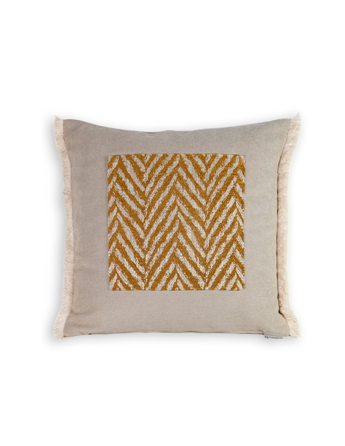 Cojín beige centro espiga ocre con relleno premium 50X50