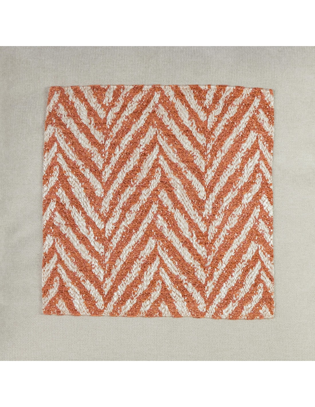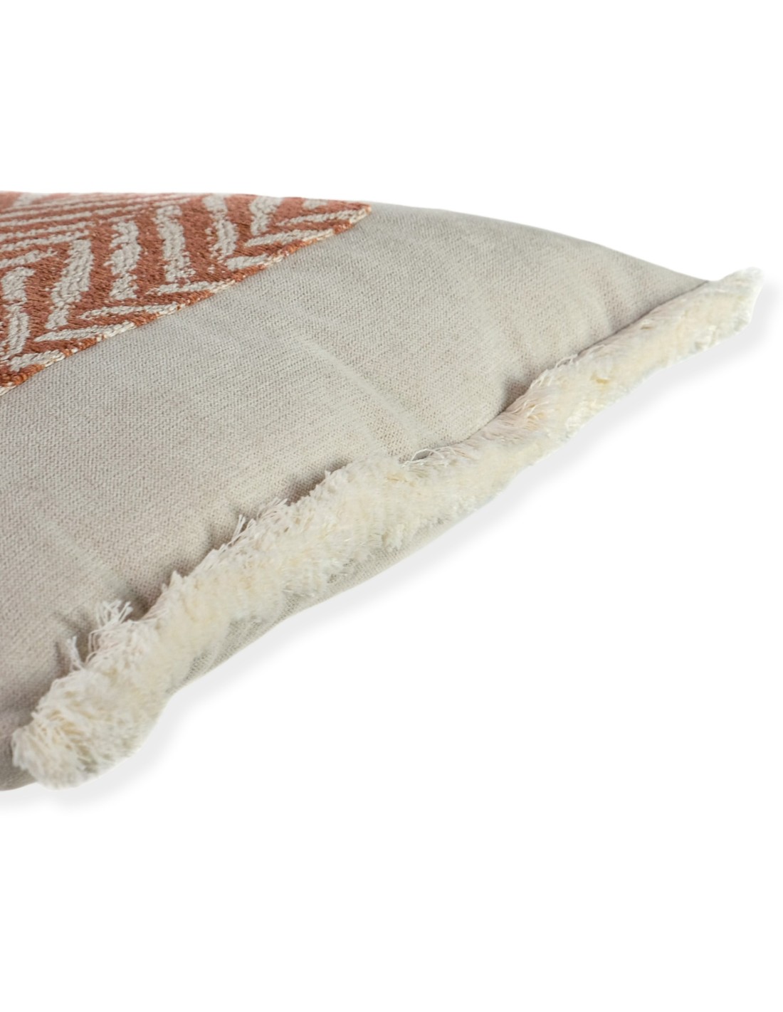 Cojín centro espiga en tono caldera fleco blanco con relleno premium 50X50
