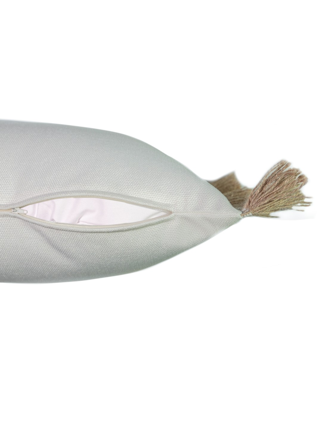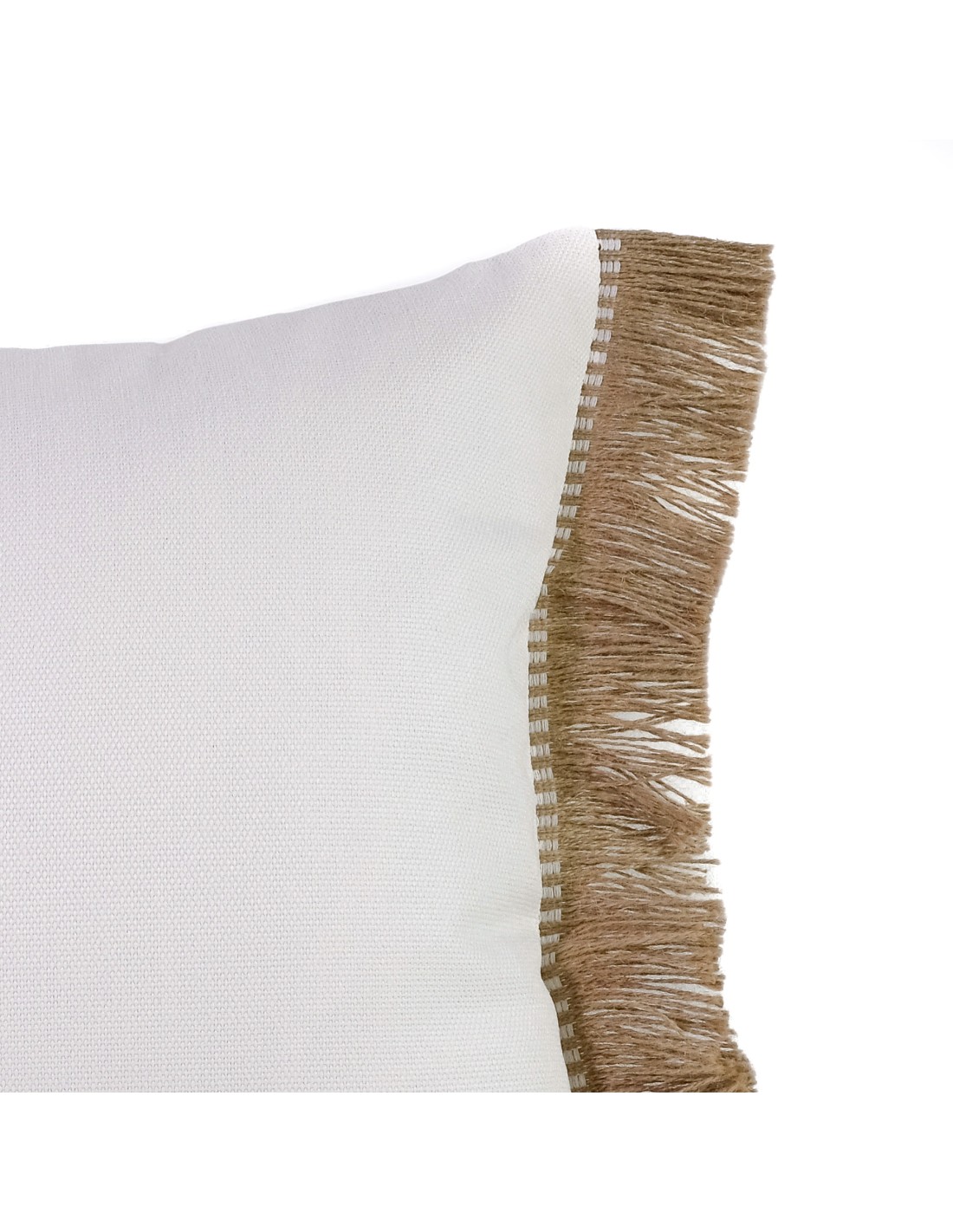 Cojín blanco roto fleco rafia natural con relleno premium 70X50