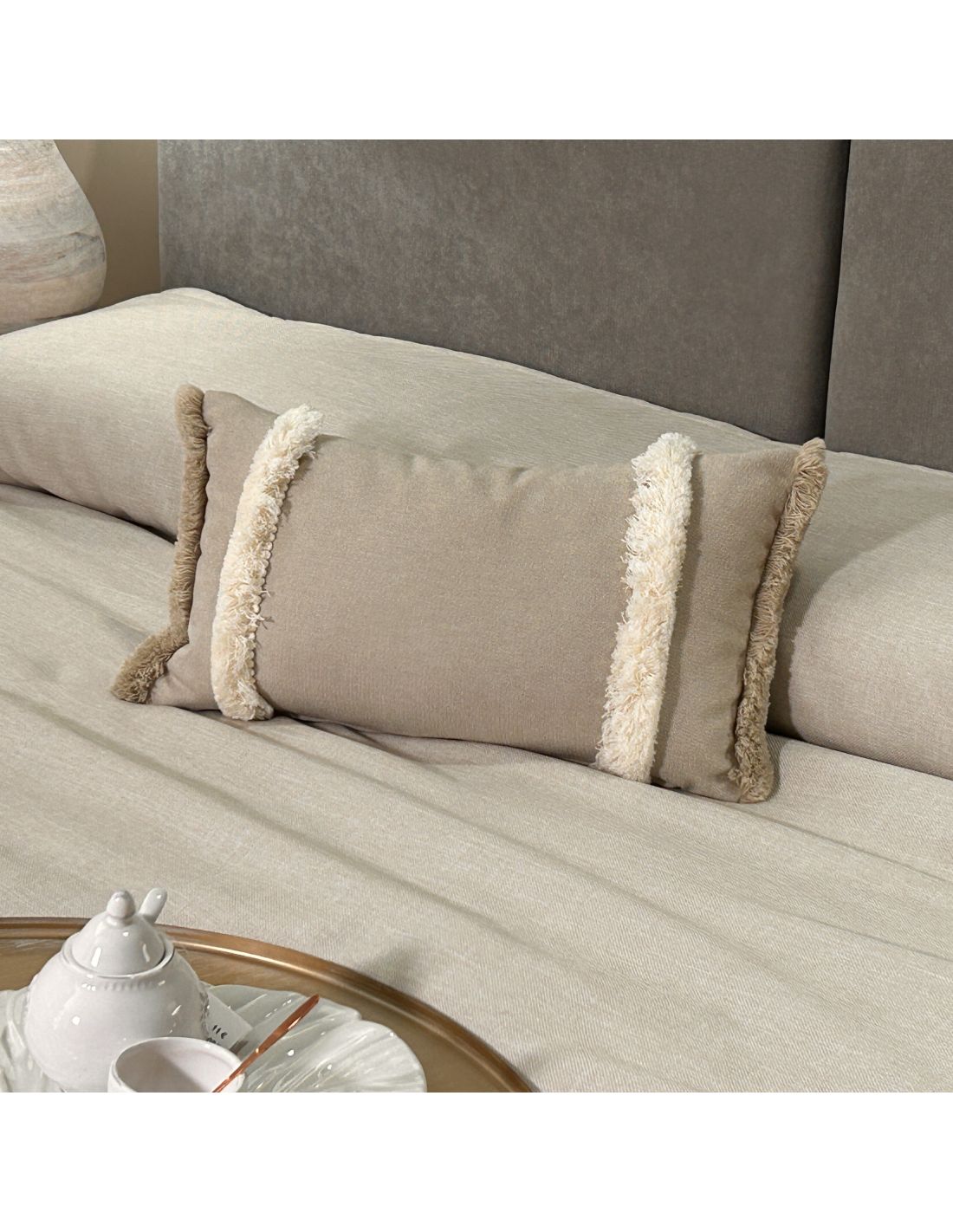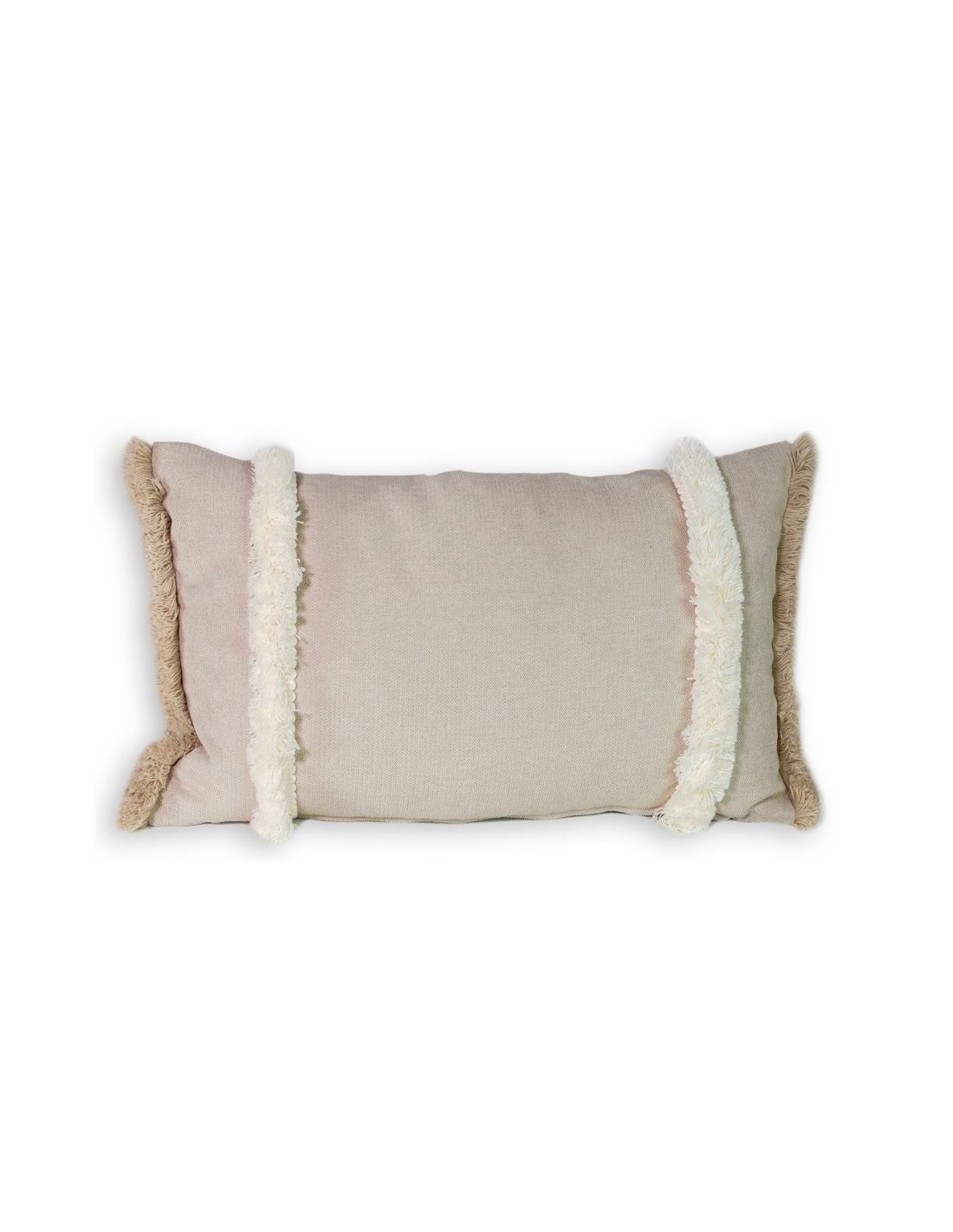 Cojín liso doble fleco arena-blanco con relleno premium 50x30