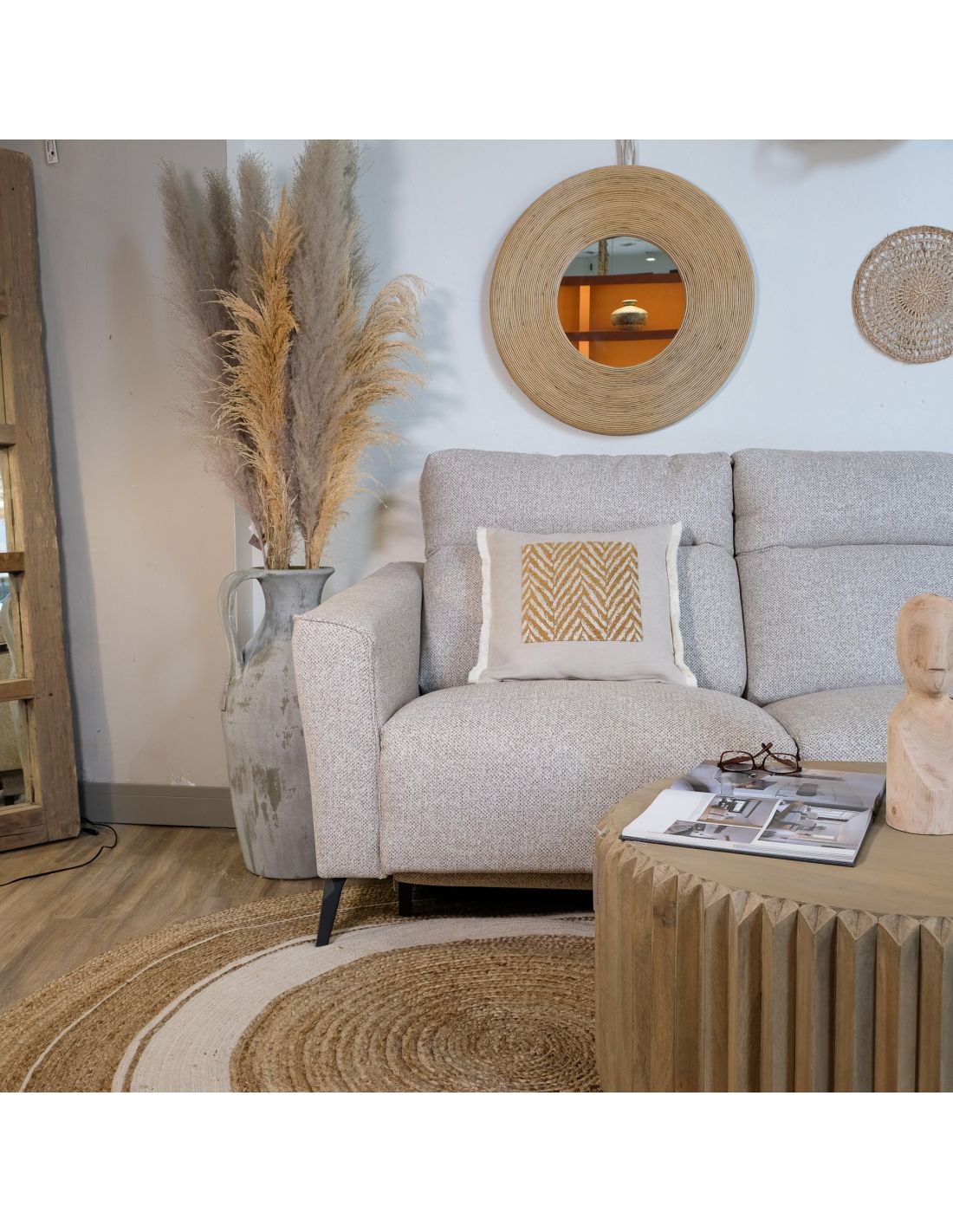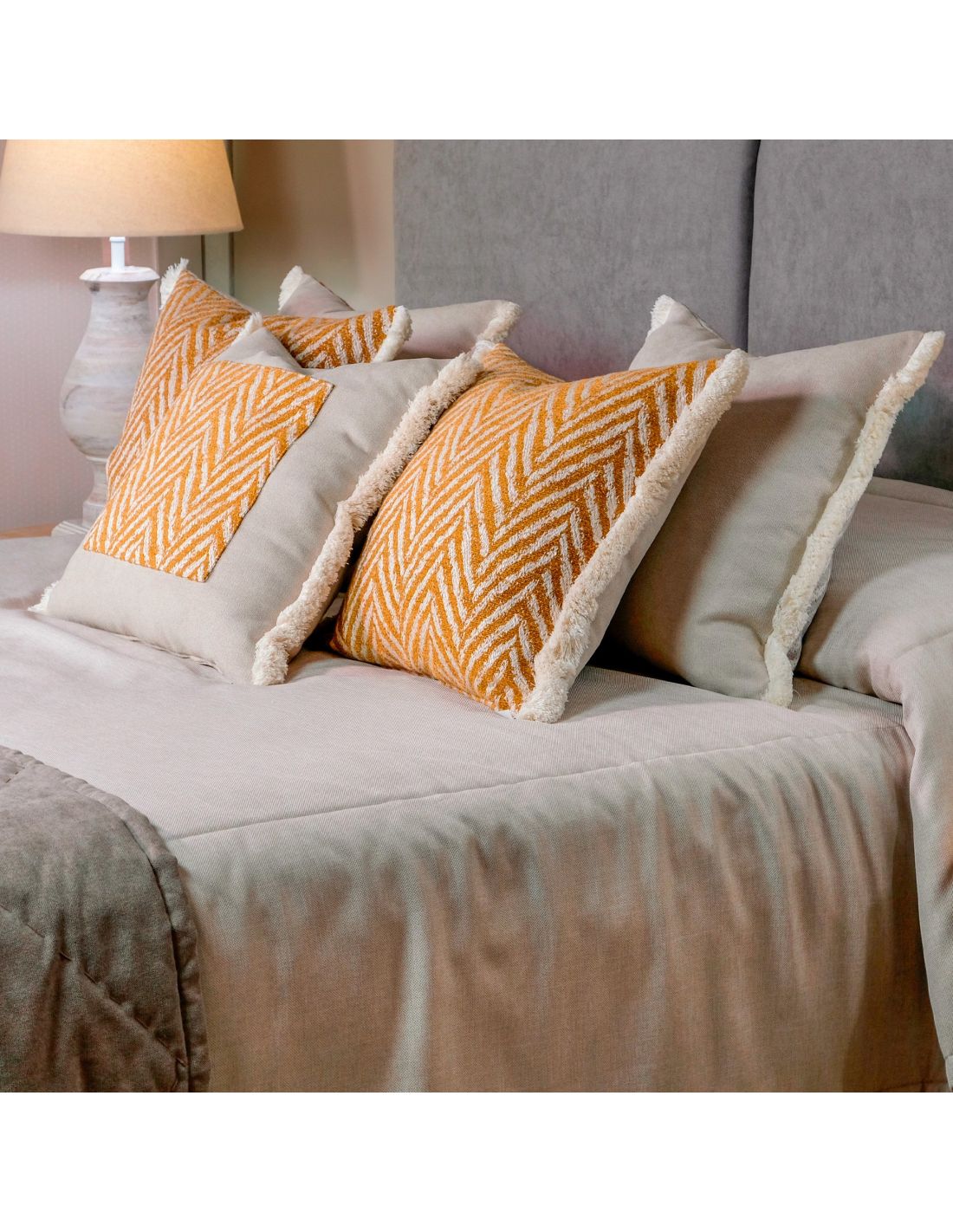 Cojín arena centro espiga ocre fleco blanco con relleno premium 50x50