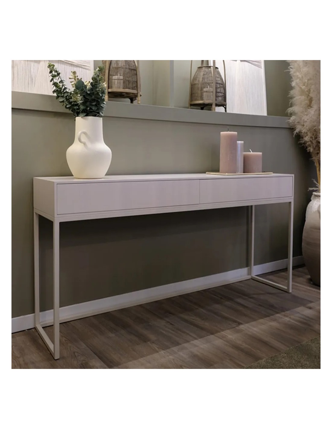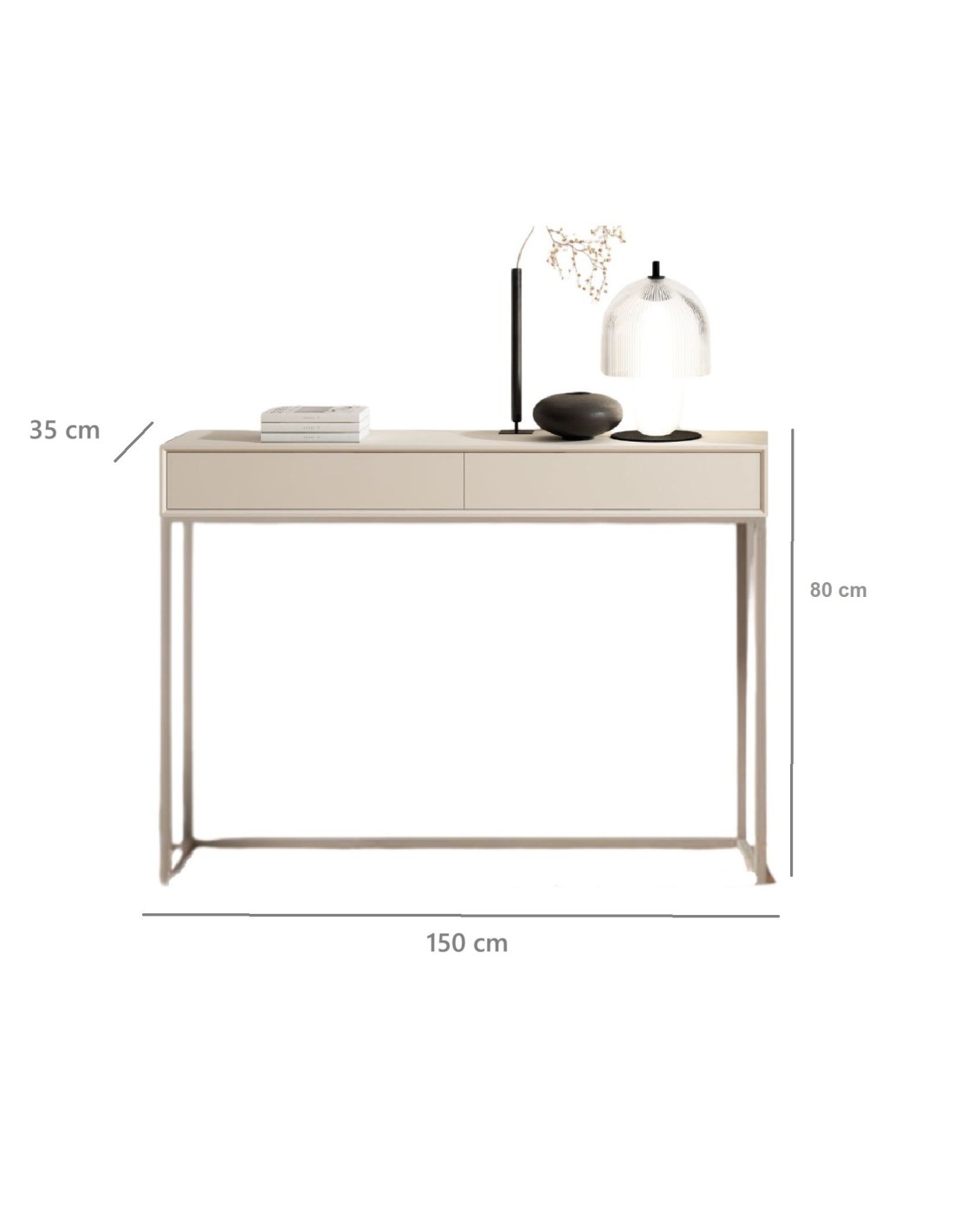 Consola 2 cajones patas metal laca beige mate 150x35x80