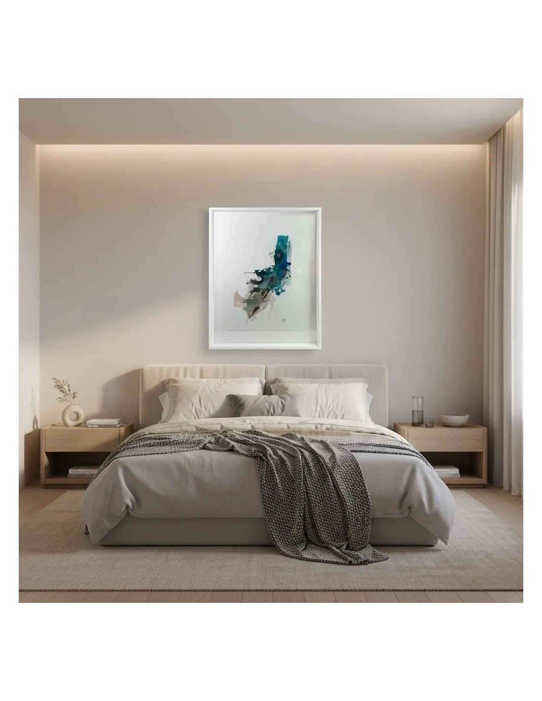 Este cuadro abstracto de 100x80 cm combina pinceladas fluidas en tonos azules, grises y matices neutros, creando una composición equilibrada y contemporánea. El marco blanco realza la obra y aporta luminosidad, facilitando su integración en distintos espacios del hogar. Es una pieza ideal para aportar profundidad visual y un toque artístico a salones, comedores o dormitorios. El color puede variar ligeramente según la iluminación y el dispositivo de visualización.