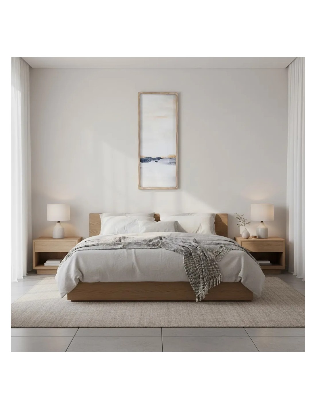Este cuadro abstracto destaca por su composición equilibrada y sus tonos neutros con matices suaves, creando una sensación de serenidad visual. El formato vertical de 40x100 cm estiliza paredes y resulta perfecto para zonas de paso, salones o comedores. Su marco de madera de abeto aporta un acabado natural que refuerza su carácter contemporáneo y atemporal. Las tonalidades pueden presentar ligeras variaciones según la luz y el acabado del material.