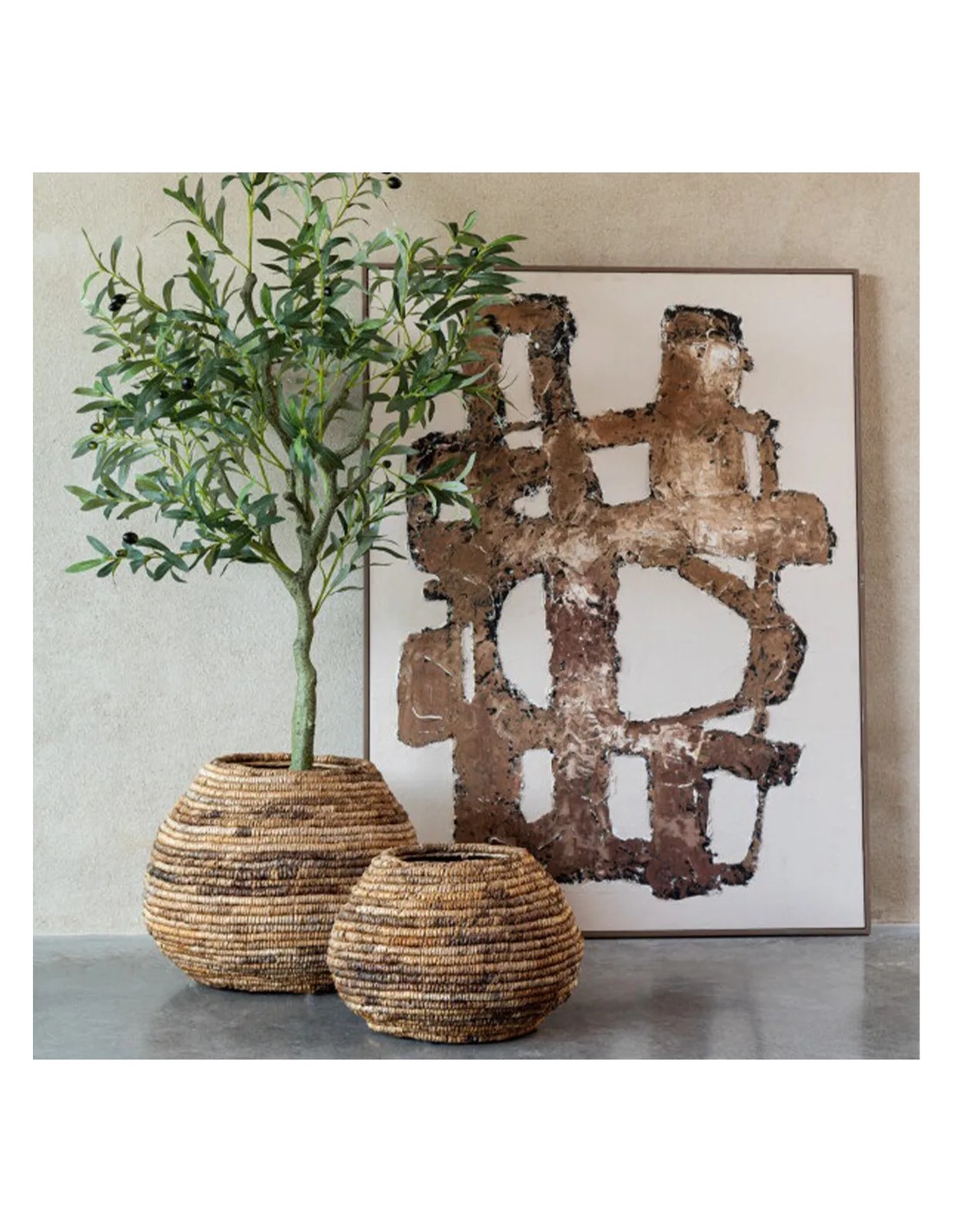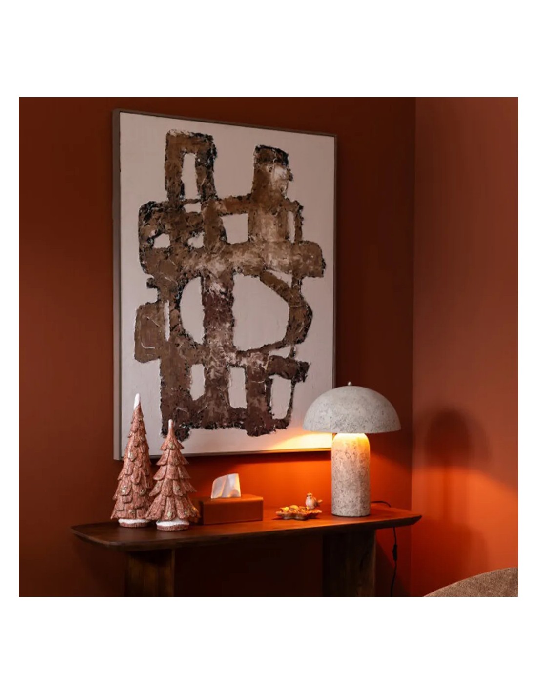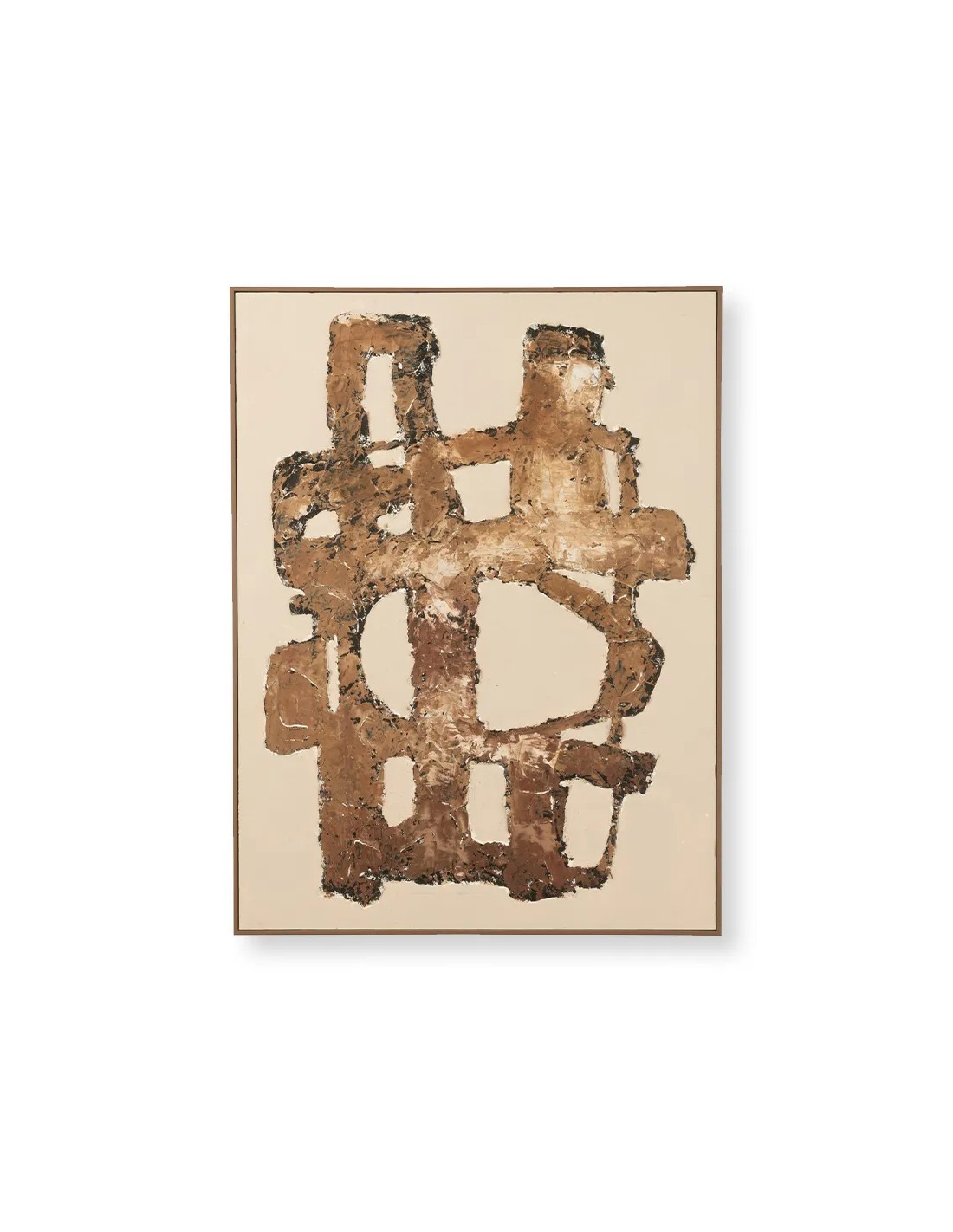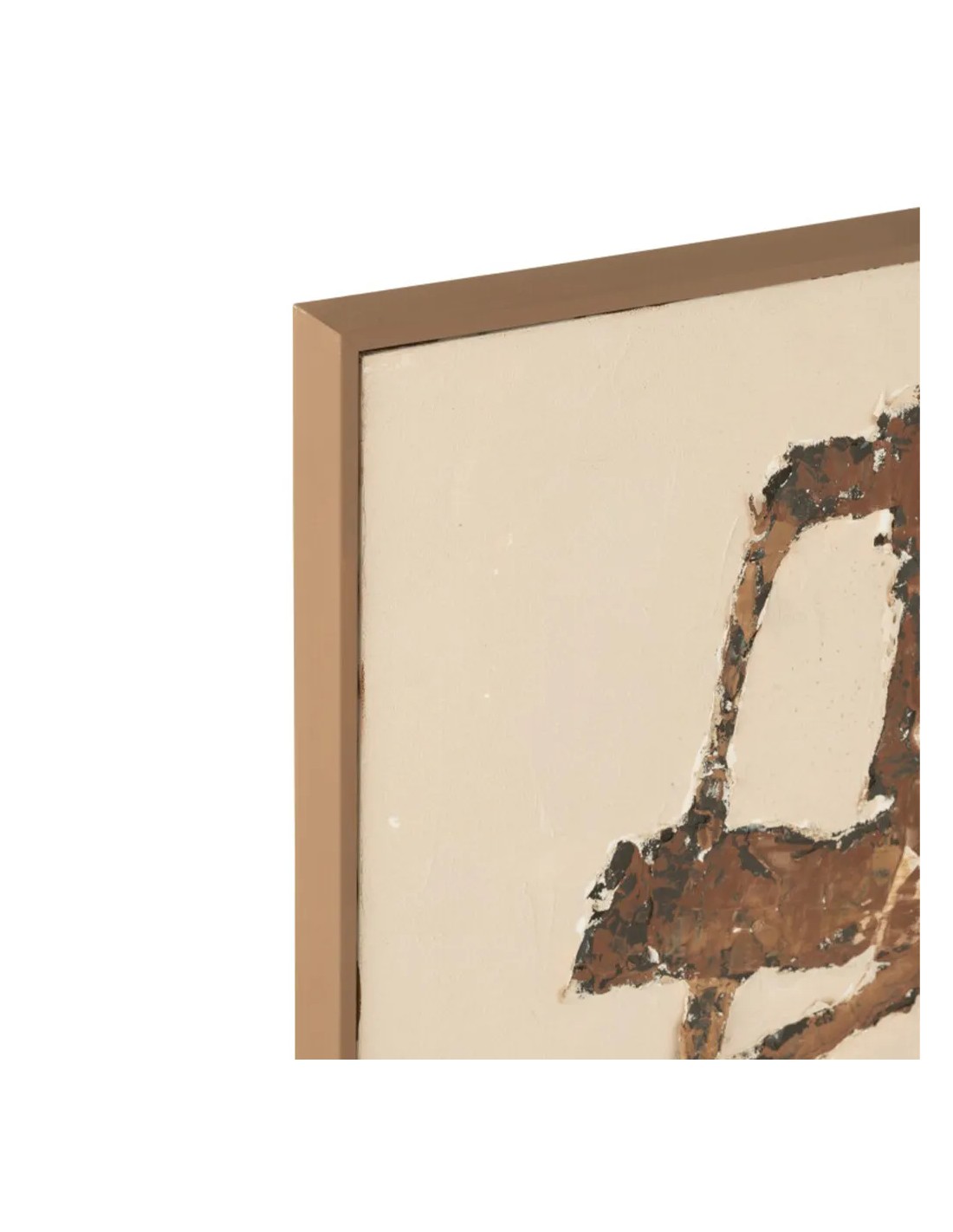 Este cuadro de 123x93 cm presenta una obra abstracta sobre lienzo, enmarcada en madera de pino natural. Su diseño moderno y expresivo aporta profundidad visual y carácter a cualquier estancia. Ideal para salones, dormitorios o zonas de paso, es una pieza decorativa que combina arte y calidez en perfecta armonía.
