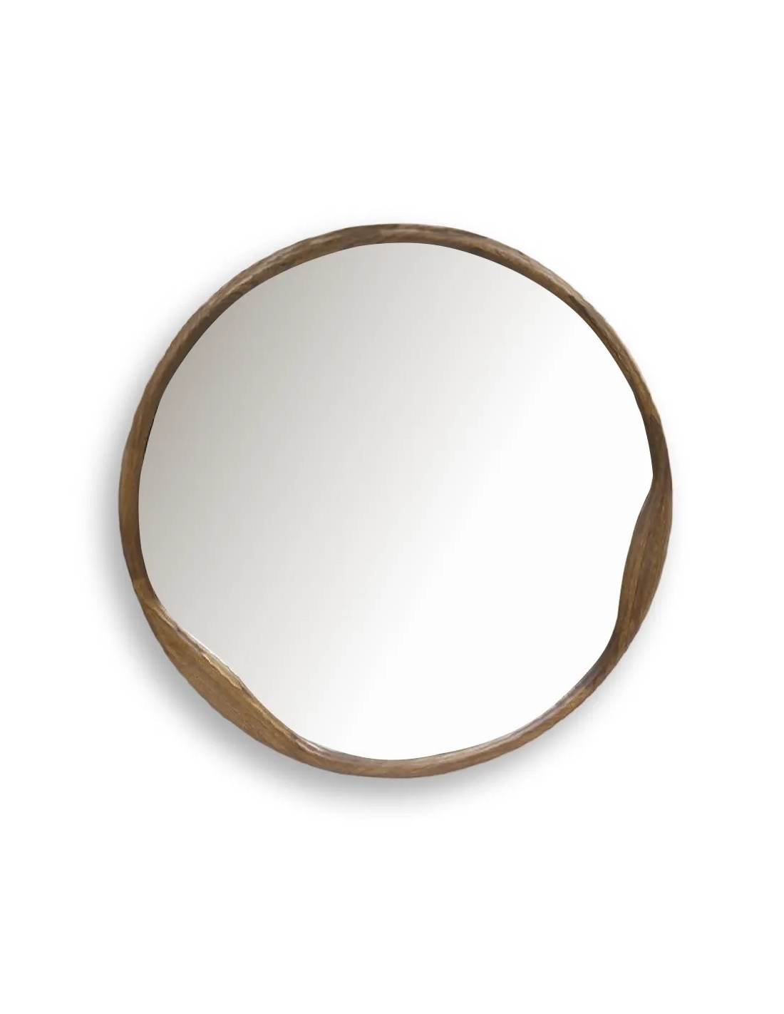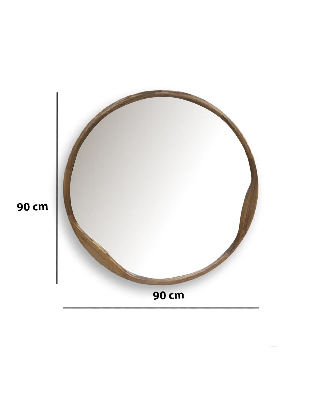 Espejo redondo 90 cm en madera maciza de pawlonia color nogal. Diseño exclusivo, elegante y cálido para dar equilibrio y luminosidad a tu hogar.