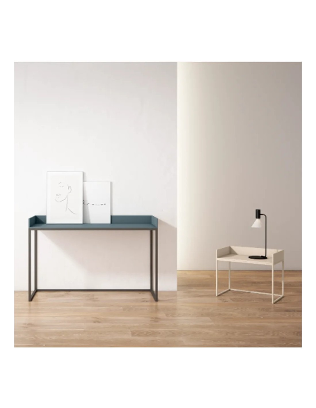 Este escritorio combina una superficie lacada en acabado mate con patas metálicas resistentes, ofreciendo una estética limpia y minimalista. Su tamaño compacto (120 cm de ancho, 50 cm de fondo y 83 cm de alto) lo hace perfecto para oficinas domésticas, estudios o zonas de trabajo en espacios reducidos. La estructura metálica aporta estabilidad y un toque industrial, mientras que el acabado mate evita reflejos y aporta sobriedad visual. Puede incluir detalles como cajones ocultos o pasacables, según el modelo.