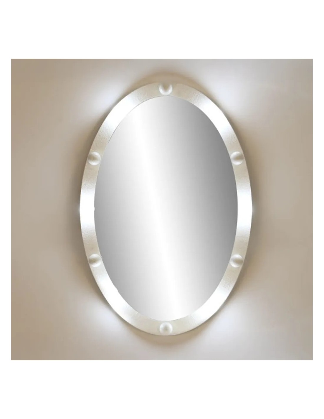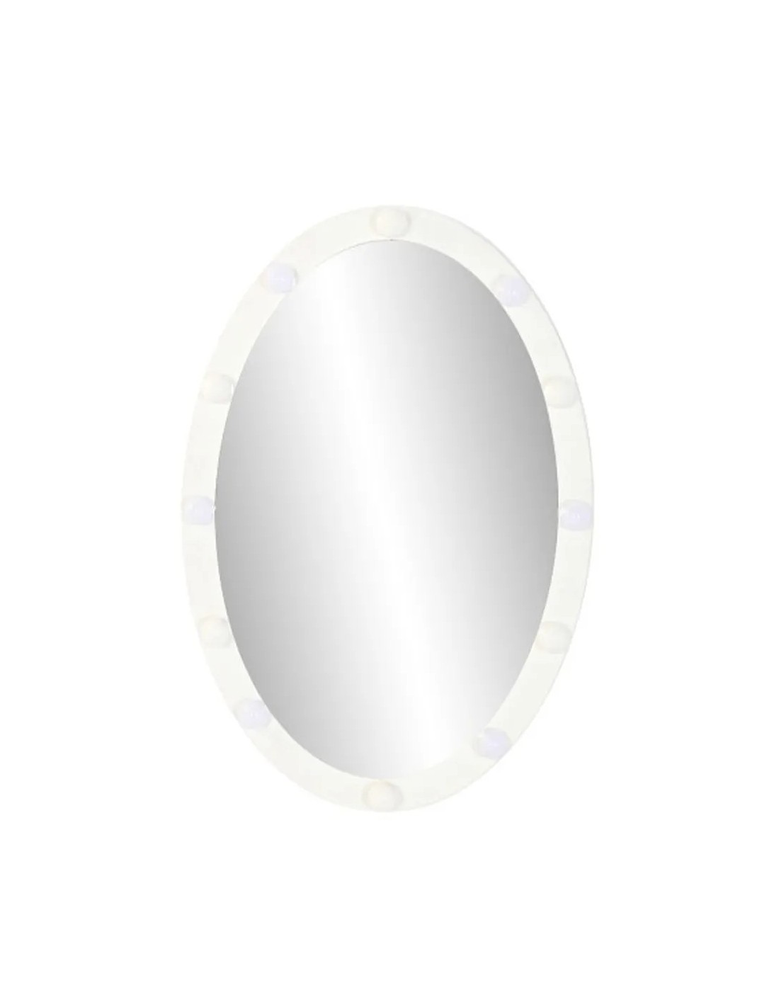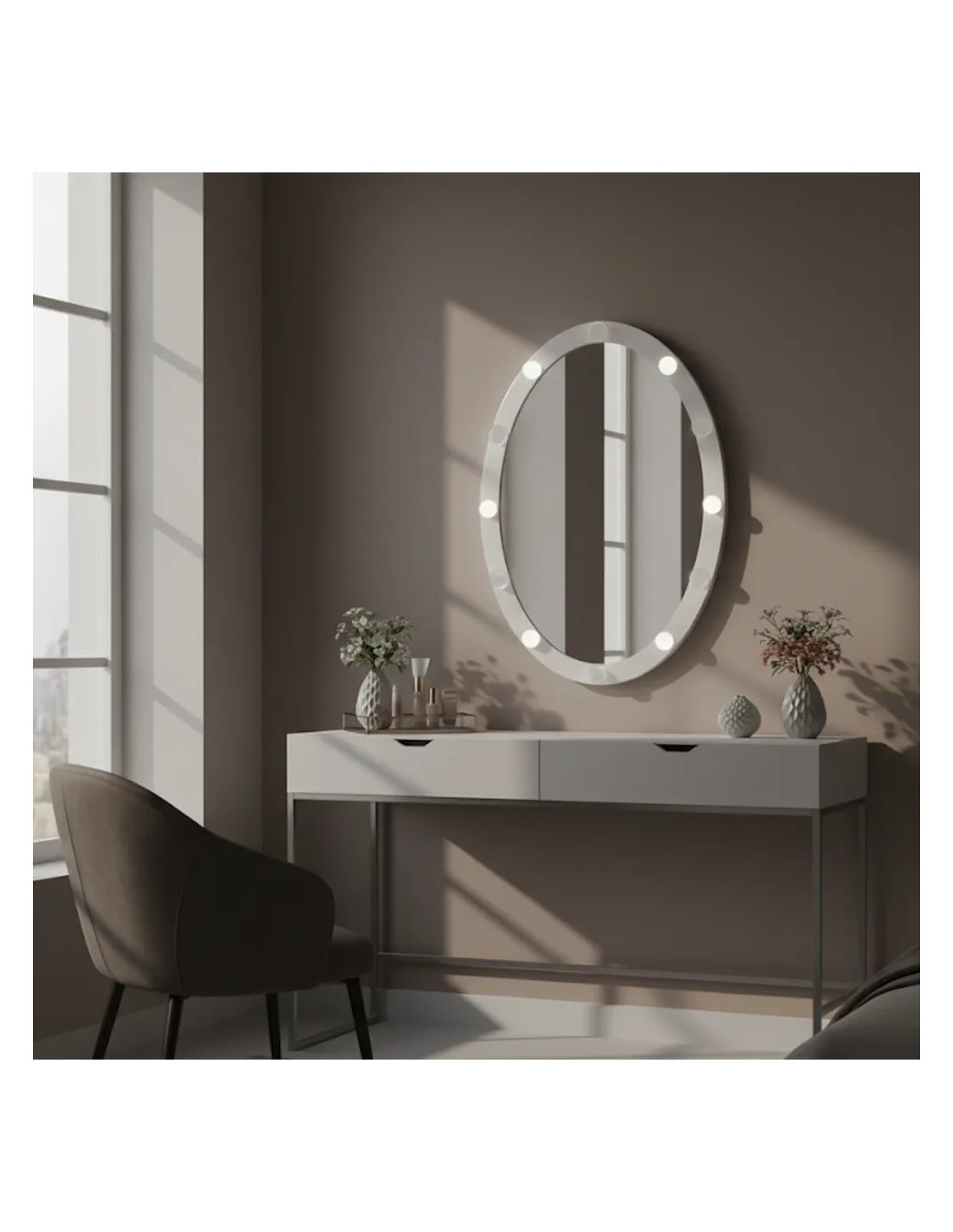 Espejo ovalado blanco 63x91 cm con bombillas LED, ideal para tocadores de dormitorio glamoroso.