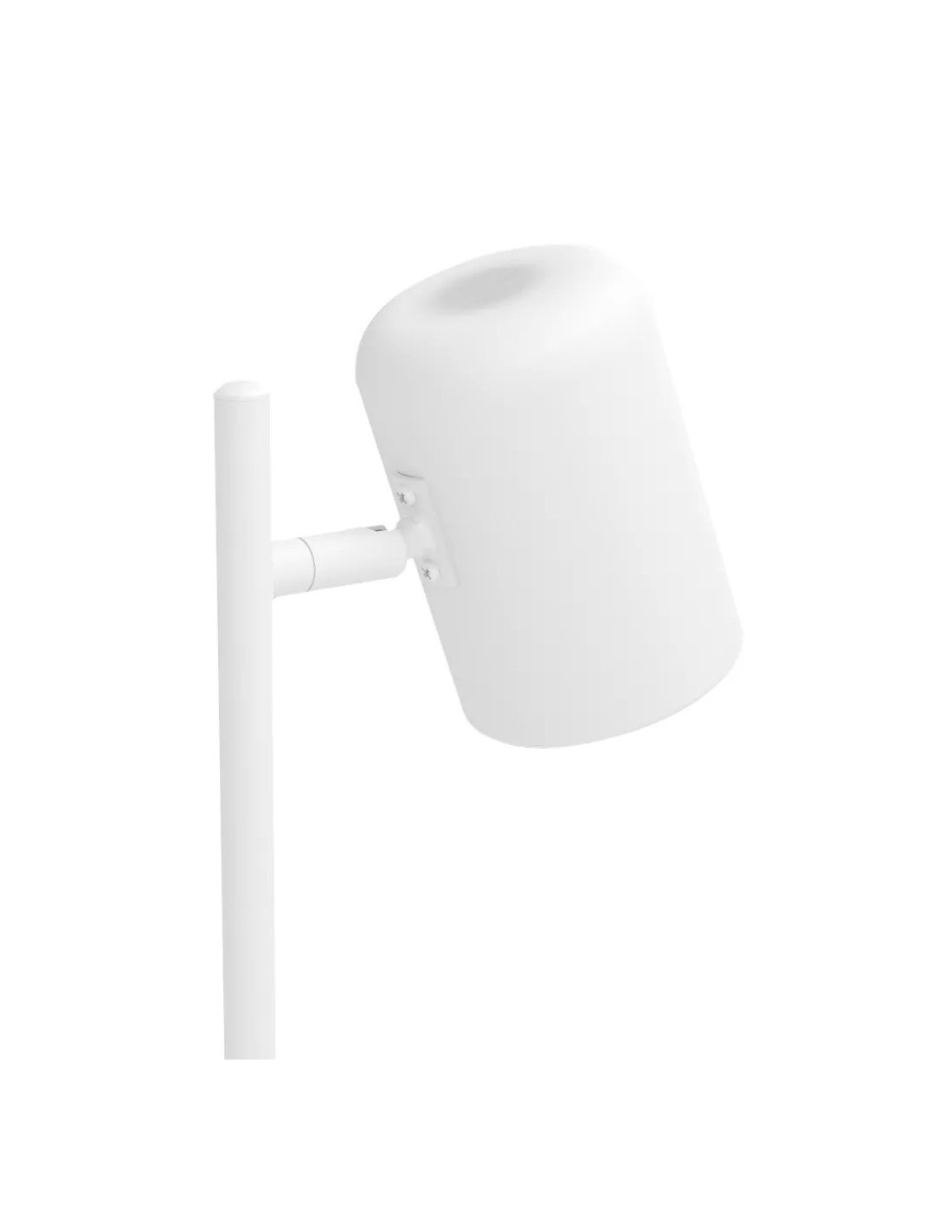 Lámpara LED de sobremesa blanca con cabezal móvil. Funcional, moderna y de luz cálida.