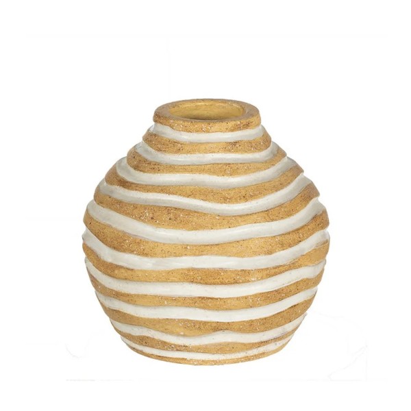 Jarrón decorativo de cerámica beige con delicado relieve ondulado, perfecto para dar calidez y estilo a cualquier rincón del hogar.