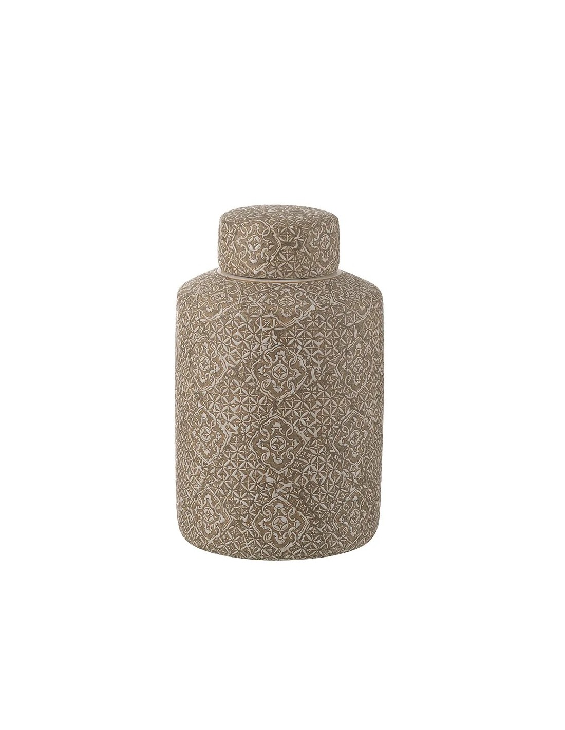 Tarro decorativo porcelana motivos geométricos beige-blanco 31x20