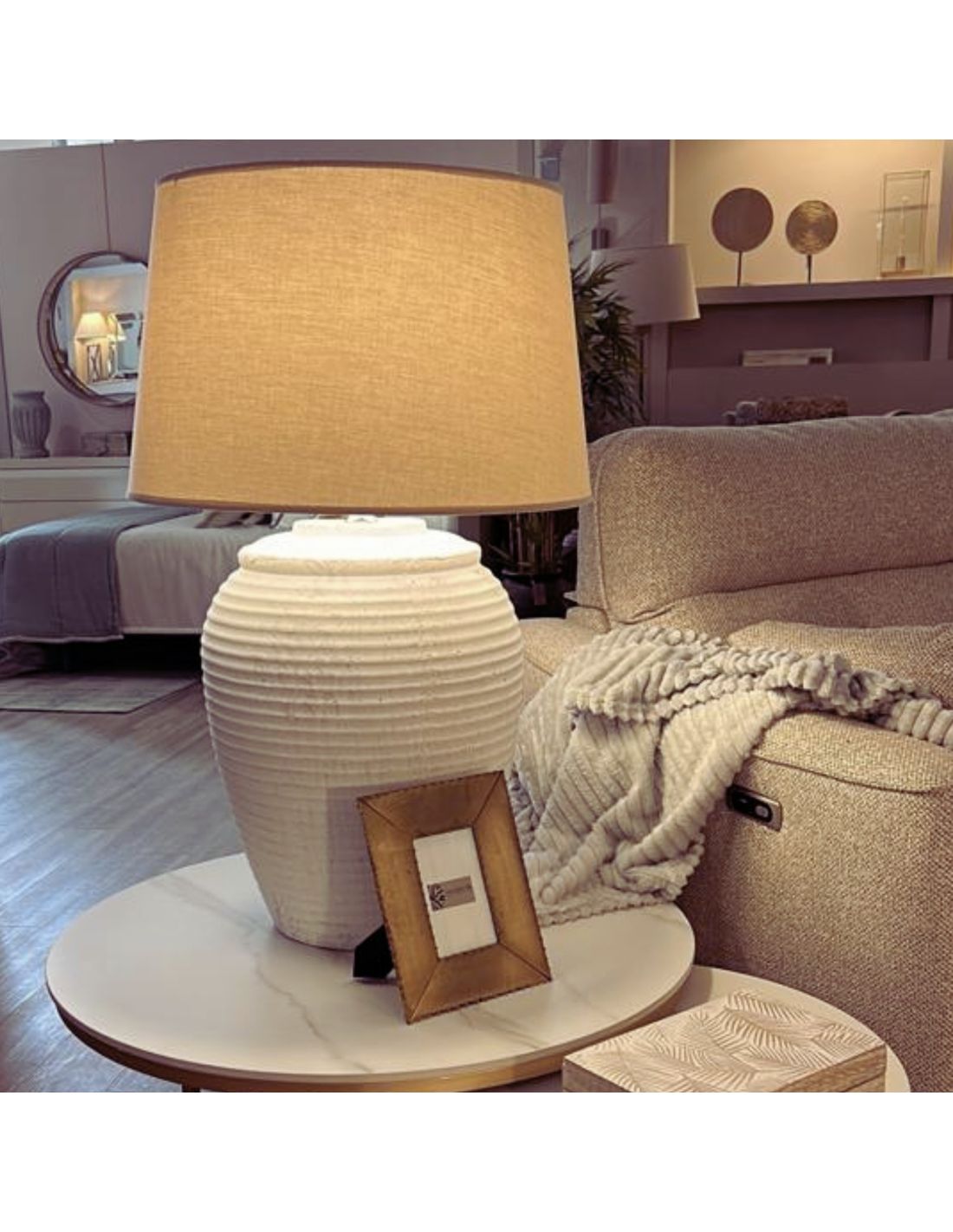 Lámpara sobremesa blanca estriada 37x58 Pantalla no incluida
