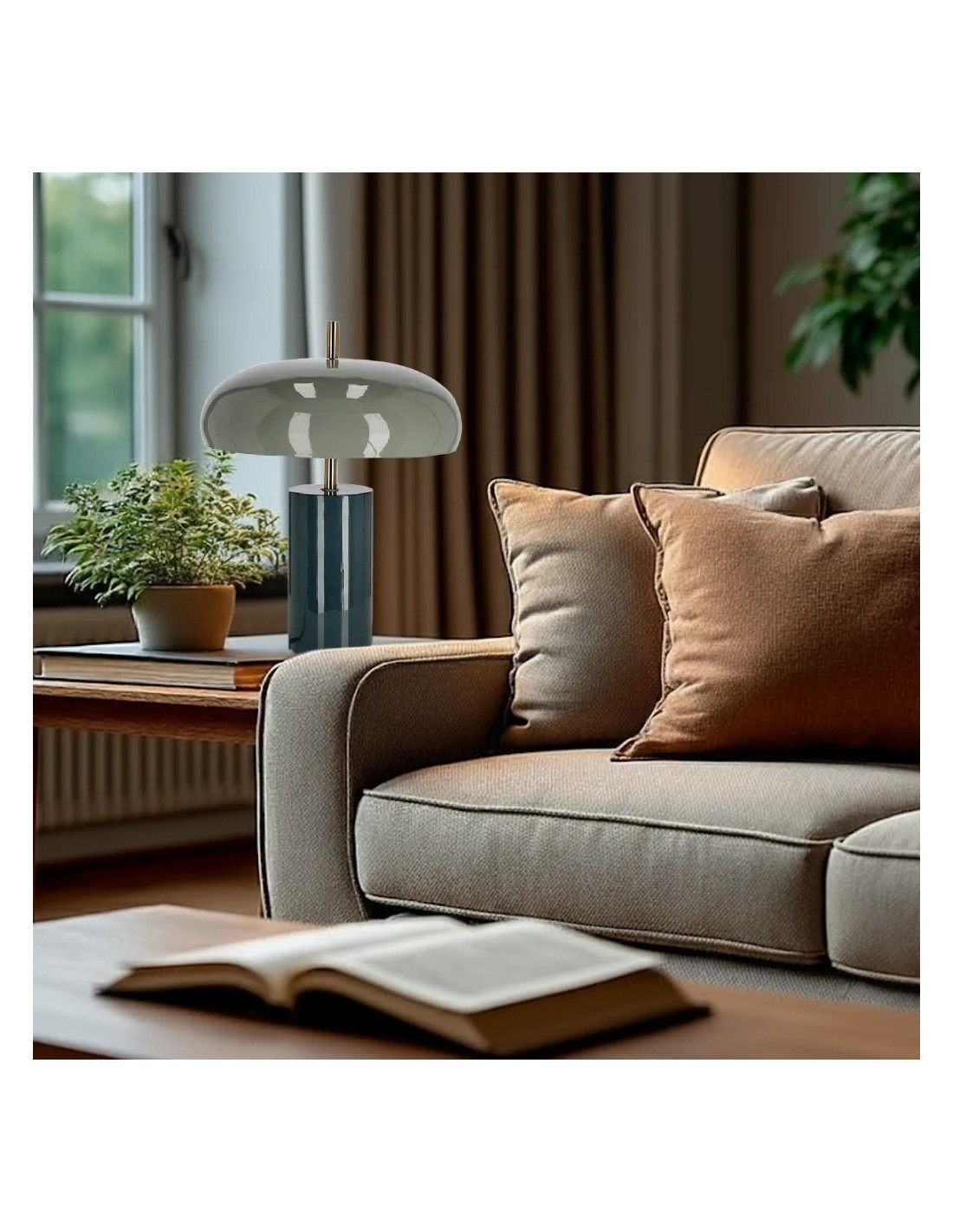 Lámpara de mesa con estructura metálica en acabado azul y dorado, de dimensiones 30×40 cm. Su diseño combina estética moderna con funcionalidad, ideal para escritorios, mesitas auxiliares o rincones de lectura. Fabricada en metal, ofrece una presencia sólida y decorativa. La longitud total del cable es de 2 metros, con interruptor situado a 1 metro de la base para mayor comodidad. Compatible con bombillas E14 de 15W LED o E14 de 23W compactas fluorescentes de bajo consumo (no incluida).