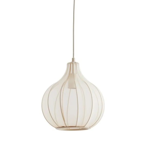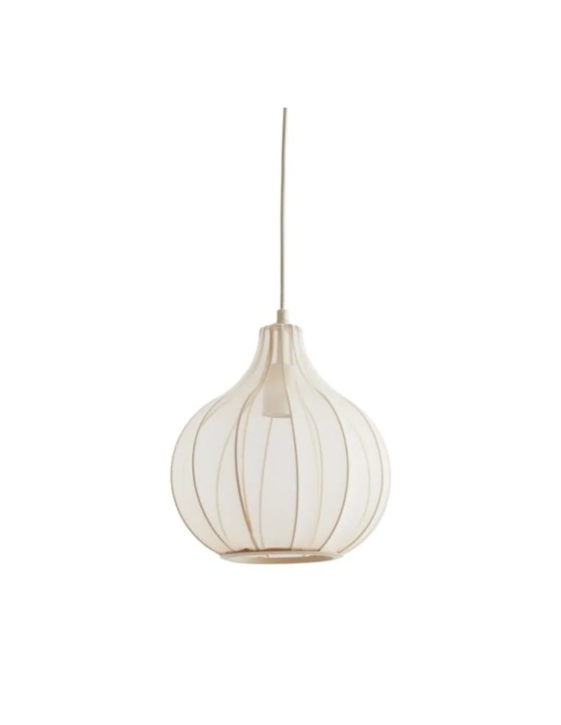 Lámpara de techo con tul semi transparente en color marfil. Diseño delicado y luminoso