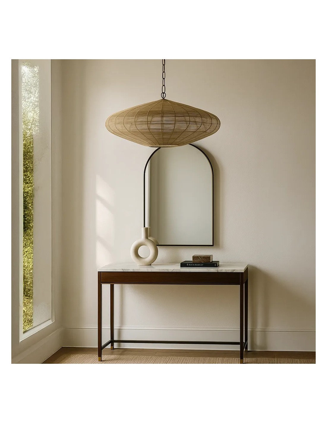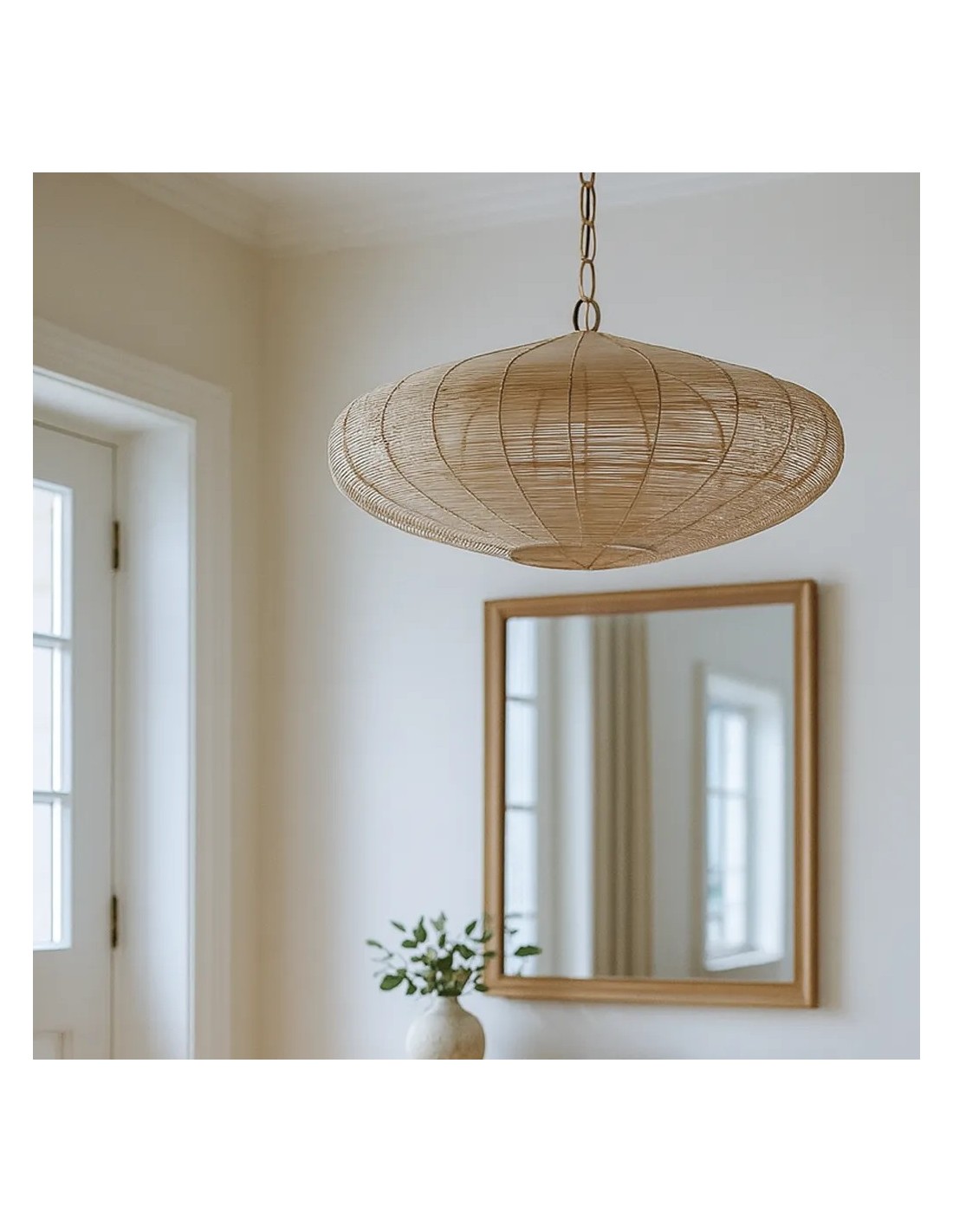 Lámpara de techo fabricada en metal con acabado oro, de dimensiones 60×23 cm. Su diseño limpio y sofisticado aporta un toque cálido y moderno a cualquier estancia, desde salones hasta dormitorios. Compatible con una bombilla E27 (no incluida), permite adaptar la iluminación según el ambiente deseado. Su estructura metálica garantiza durabilidad y estilo, convirtiéndola en una pieza decorativa funcional y versátil.