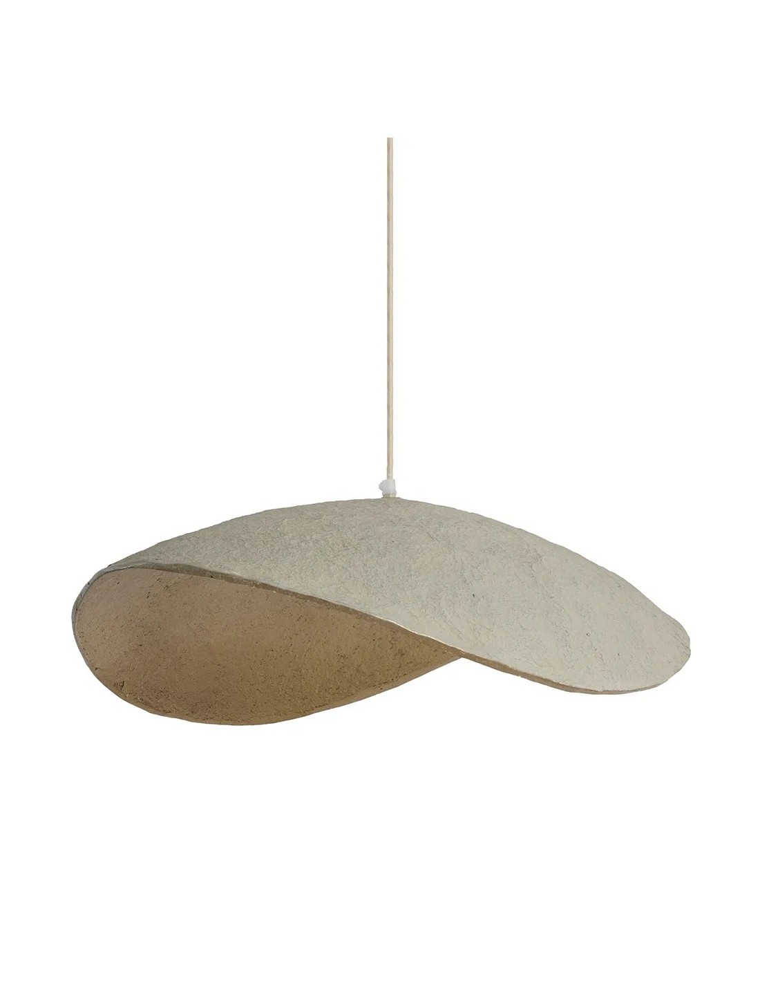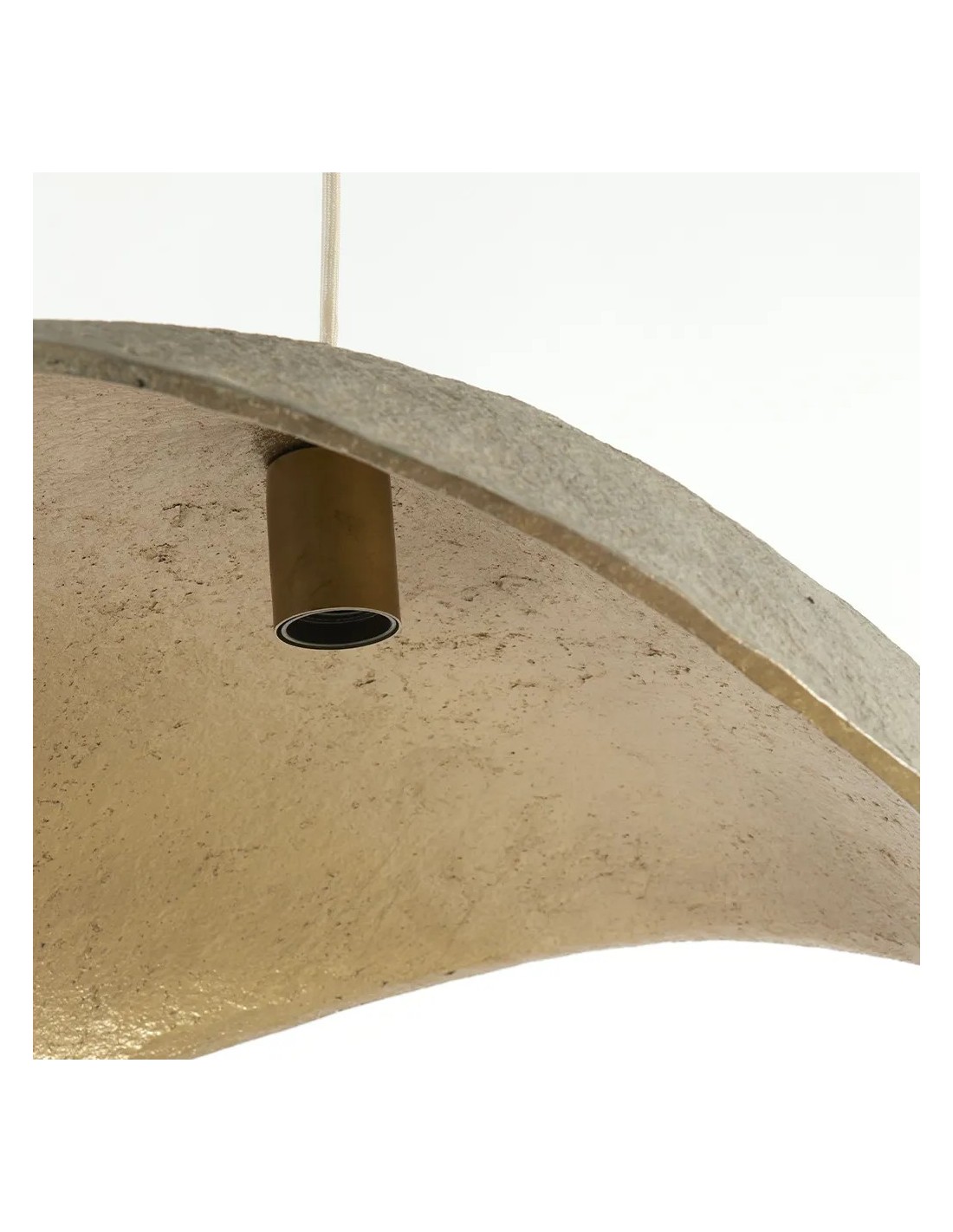 Lámpara de techo en tono piedra-oro. Elegancia cálida con diseño contemporáneo.