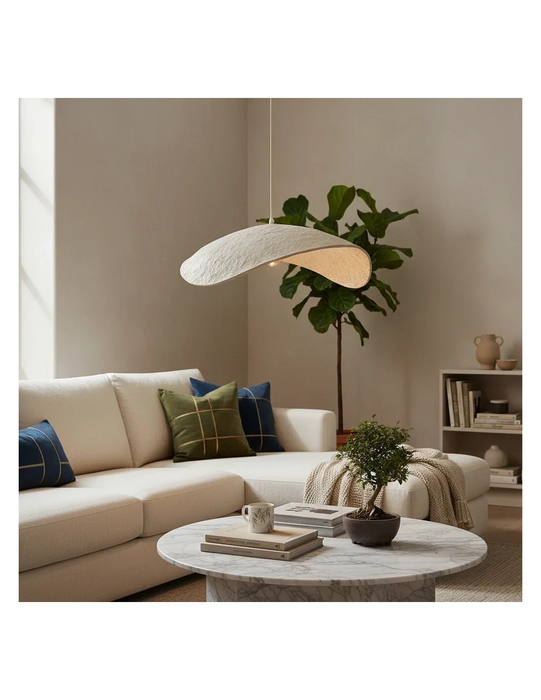 Lámpara de techo de 71×54 cm, con acabado en tono piedra-oro que aporta una presencia sofisticada y cálida al ambiente. Su diseño contemporáneo combina líneas suaves con un toque metálico sutil, ideal para salones, comedores o dormitorios con estilo. Funciona con 1 bombilla E27 (rosca gorda), compatible con iluminación cálida o neutra según preferencia. La bombilla no está incluida; se recomienda utilizar bombilla LED de filamentos para potenciar el tono cálido y el carácter decorativo de la pieza. Perfecta para crear atmósferas acogedoras y elegantes.