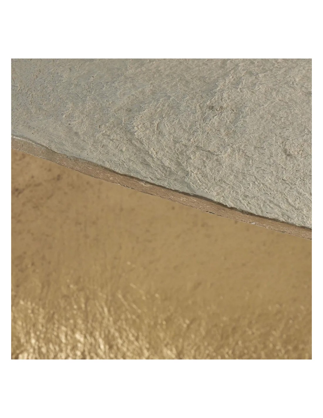 Lámpara de techo en tono piedra-dorado. Medidas 53×43×18 cm. Elegancia discreta y acabado cálido.