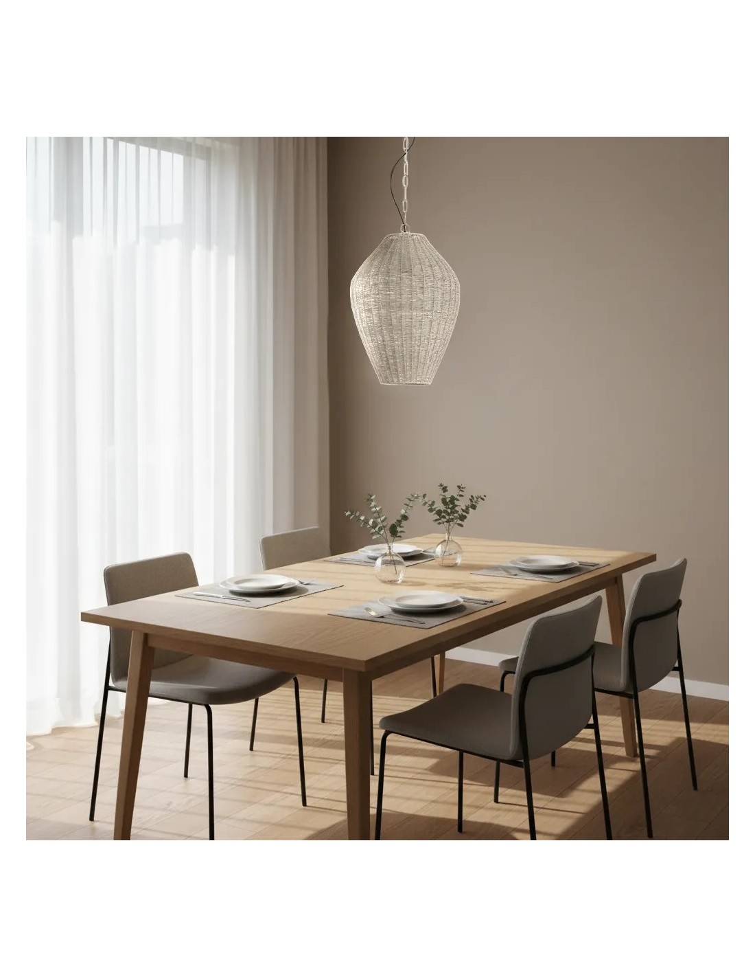Esta lámpara de techo de 46x33 cm combina un cuerpo metálico blanco con una silueta ligeramente ovalada y elegante, creando un punto de luz moderno y discreto. Su acabado uniforme y minimalista permite integrarla en diferentes ambientes, desde salones y comedores hasta recibidores, aportando un toque contemporáneo y sofisticado. Ideal para interiores modernos, minimalistas o de estilo rústico contemporáneo, esta lámpara proporciona iluminación focal de calidad y resalta la estética de cualquier espacio.