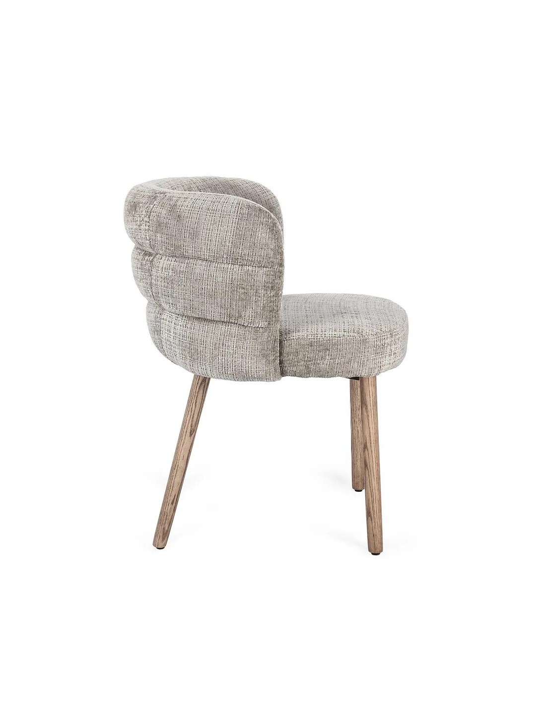 Silla tapizada gris piedra respaldo curvo patas acero-roble 60x63x78