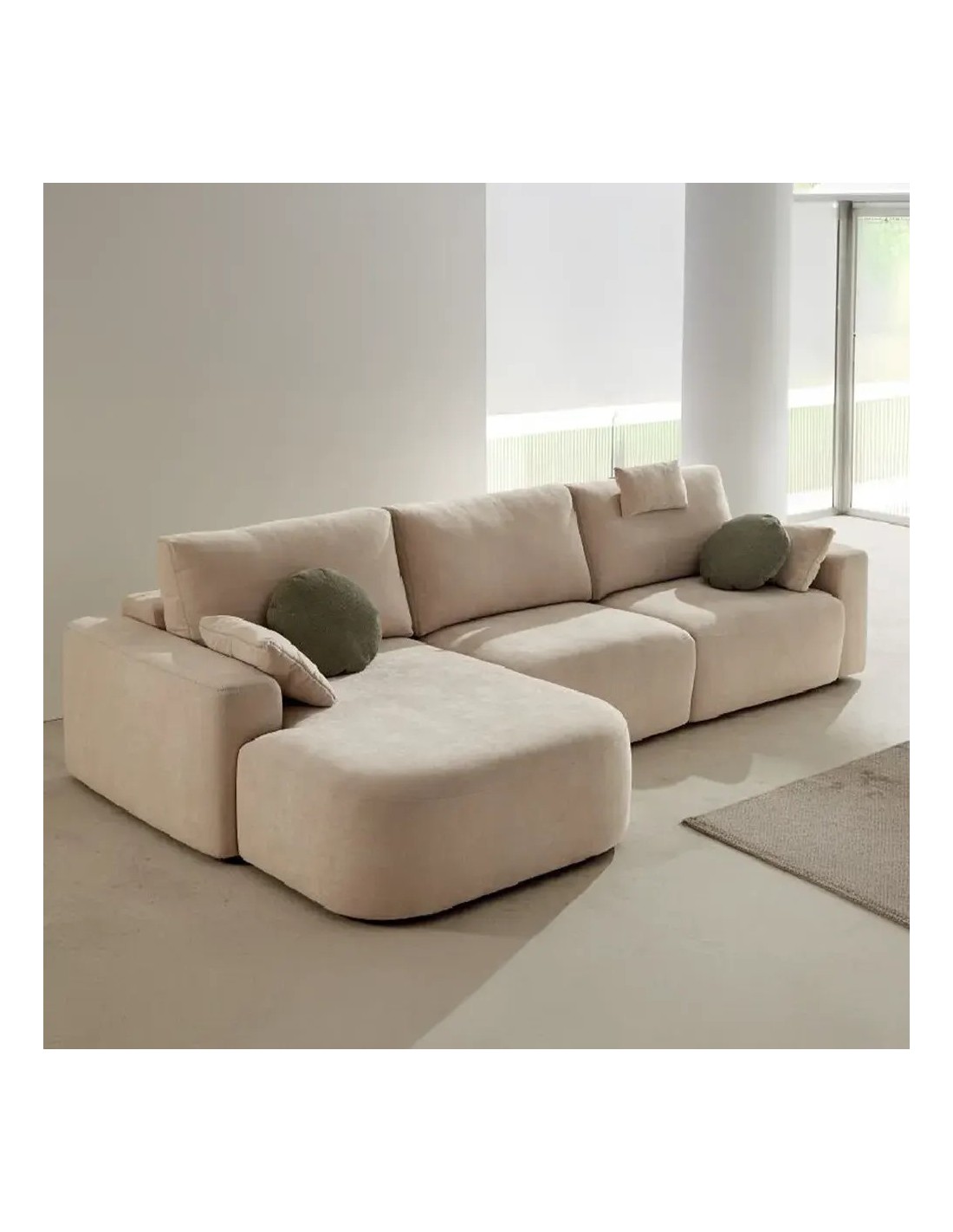 Este sofá de líneas suaves y estética contemporánea destaca por su diseño envolvente y funcional. Con capacidad para dos plazas y chaise longue en el lado derecho, ofrece una experiencia de descanso superior gracias a su sistema deslizante motorizado, que permite ajustar la profundidad del asiento con solo pulsar un botón. Tapizado en blanco, aporta luminosidad y elegancia al espacio. Sus dimensiones —294x179x100 cm— lo convierten en una pieza generosa y protagonista, ideal para salones modernos que buscan confort sin renunciar al estilo. Su estructura favorece la fluidez visual y la comodidad, integrándose con naturalidad en ambientes sofisticados.