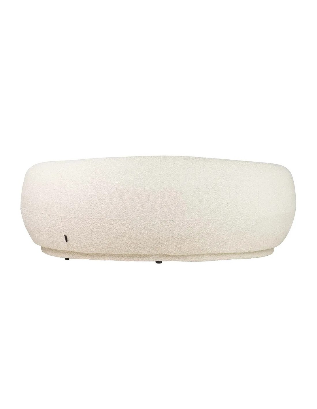 Sofá tapizado en tejido bouclé beige. Diseño envolvente y cálido que aporta textura y elegancia suave a cualquier salón.