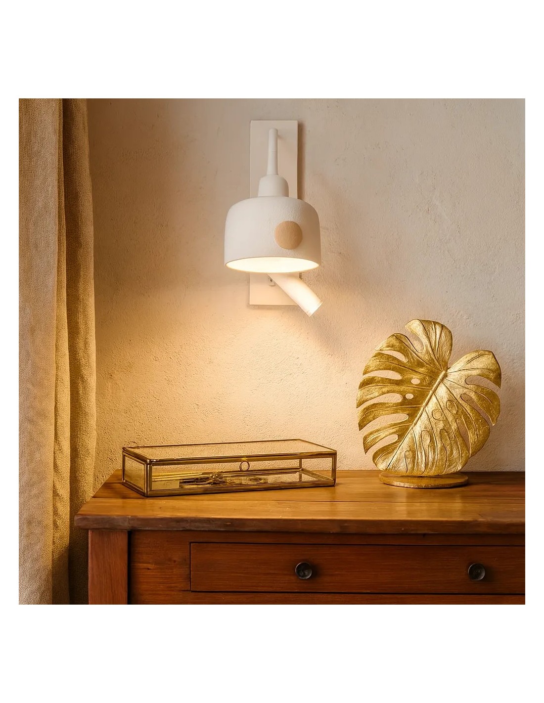 Este aplique de pared combina funcionalidad y estilo, perfecto para iluminar rincones de tu hogar con un toque moderno