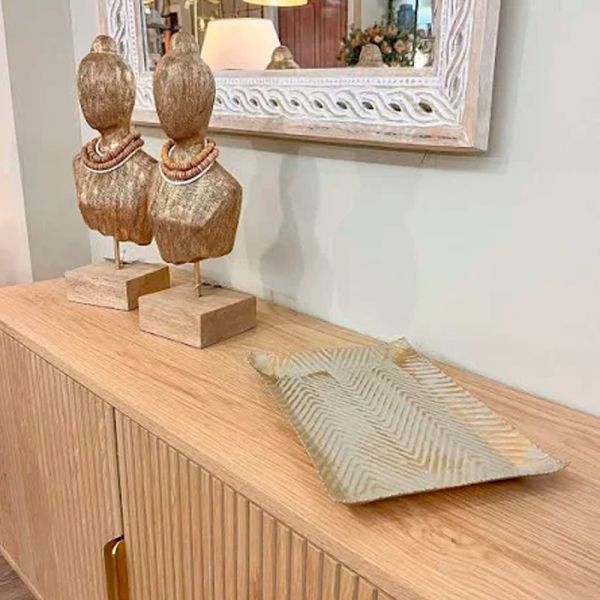 Bandeja decorativa metal, beige-oro 30x19 cm