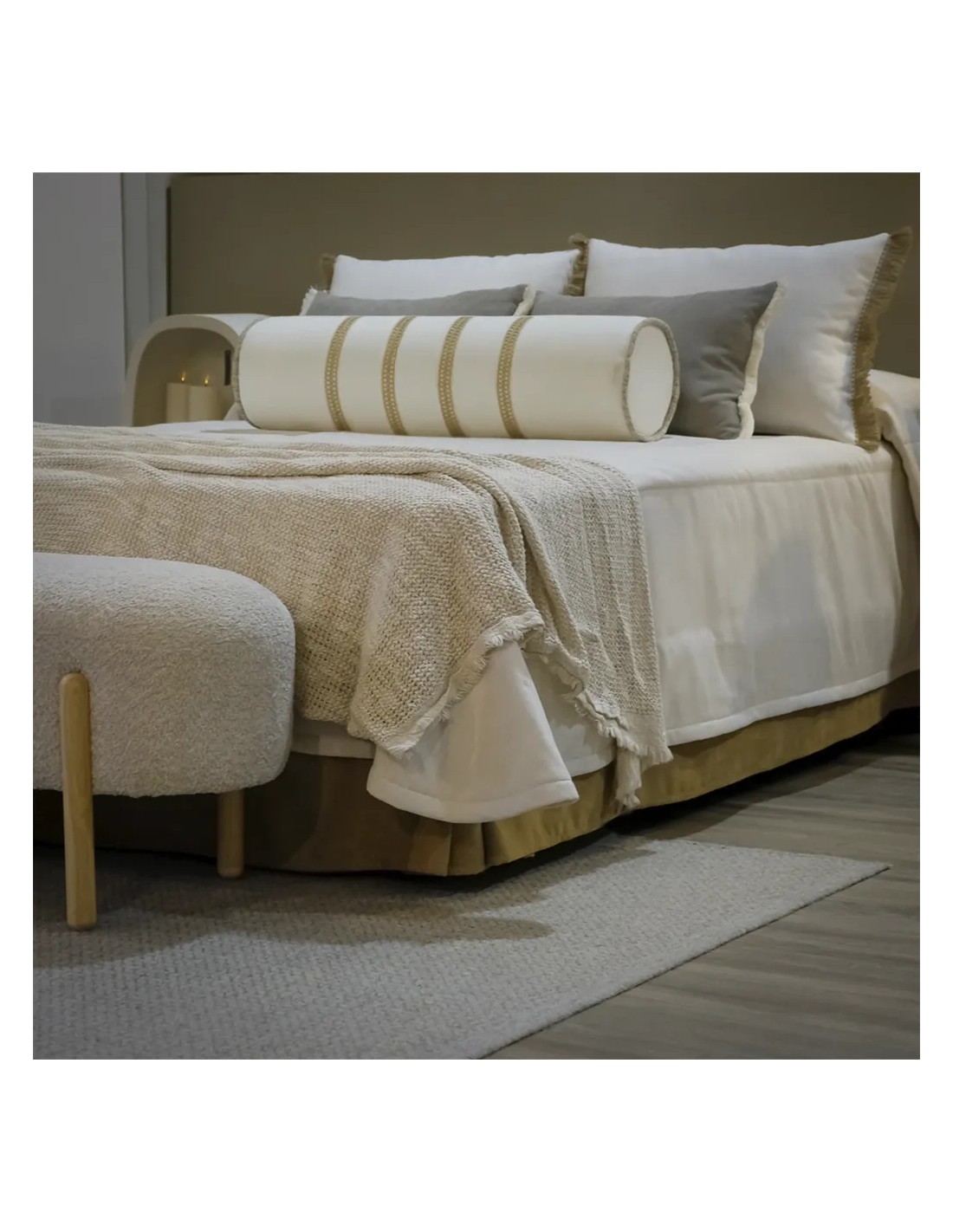 Cojín cilindro redondo blanco rayas camel 70X20 Relleno incluido