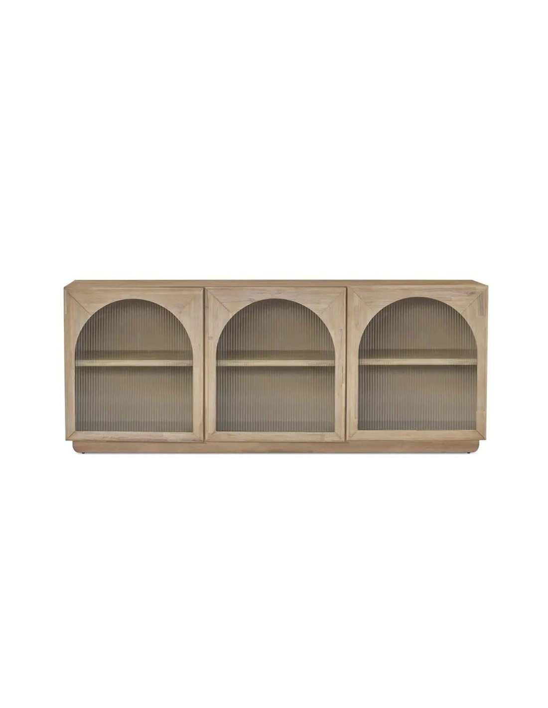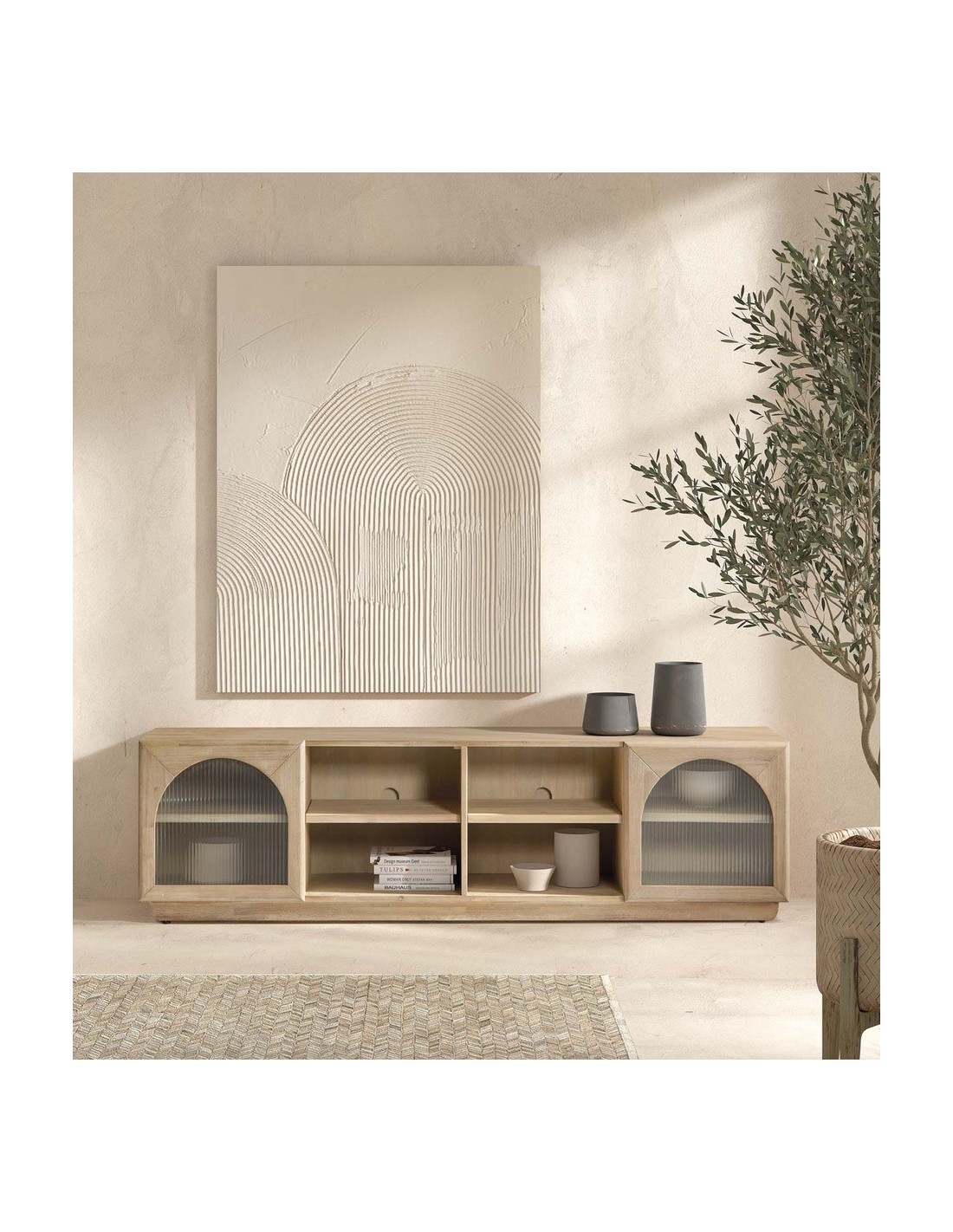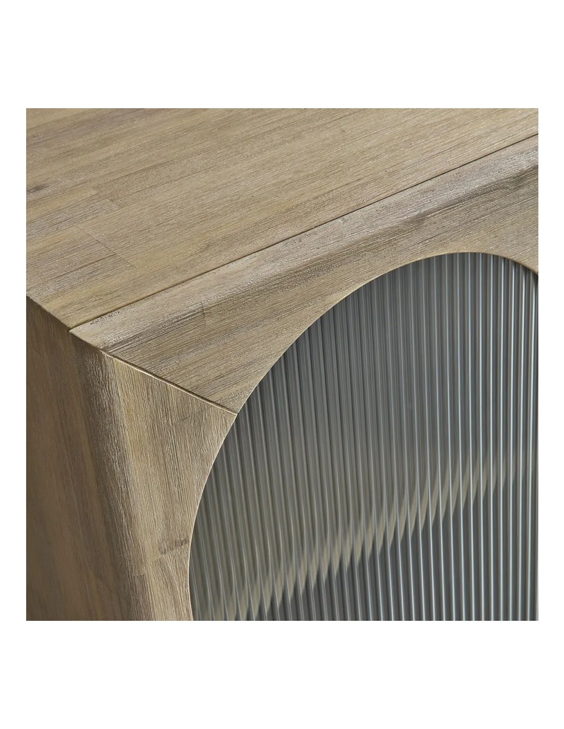 APARADOR MADERA NATURAL ACACIA 3 PUERTAS CRISTAL ACANALADO 200X45X80