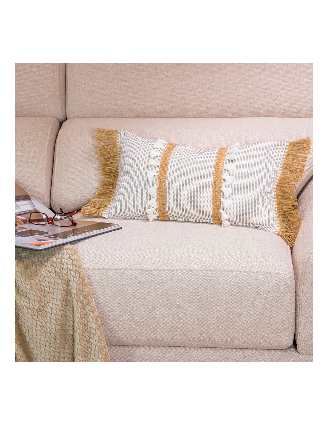 Cojín 50x30 relleno incluido doble fleco
