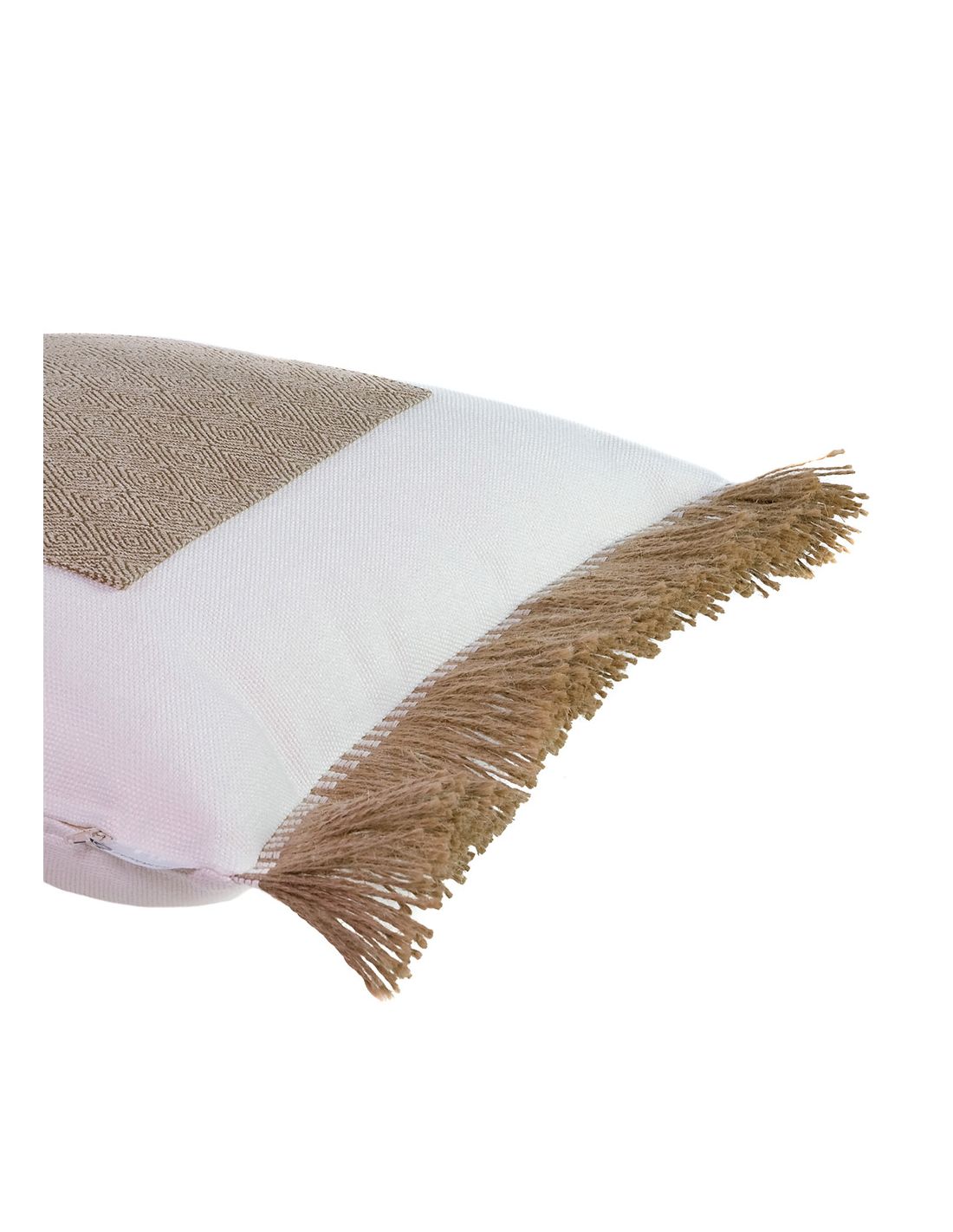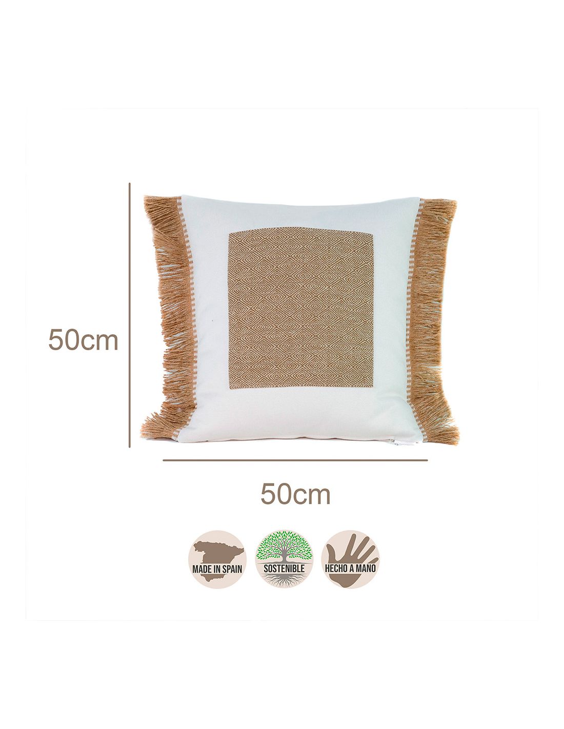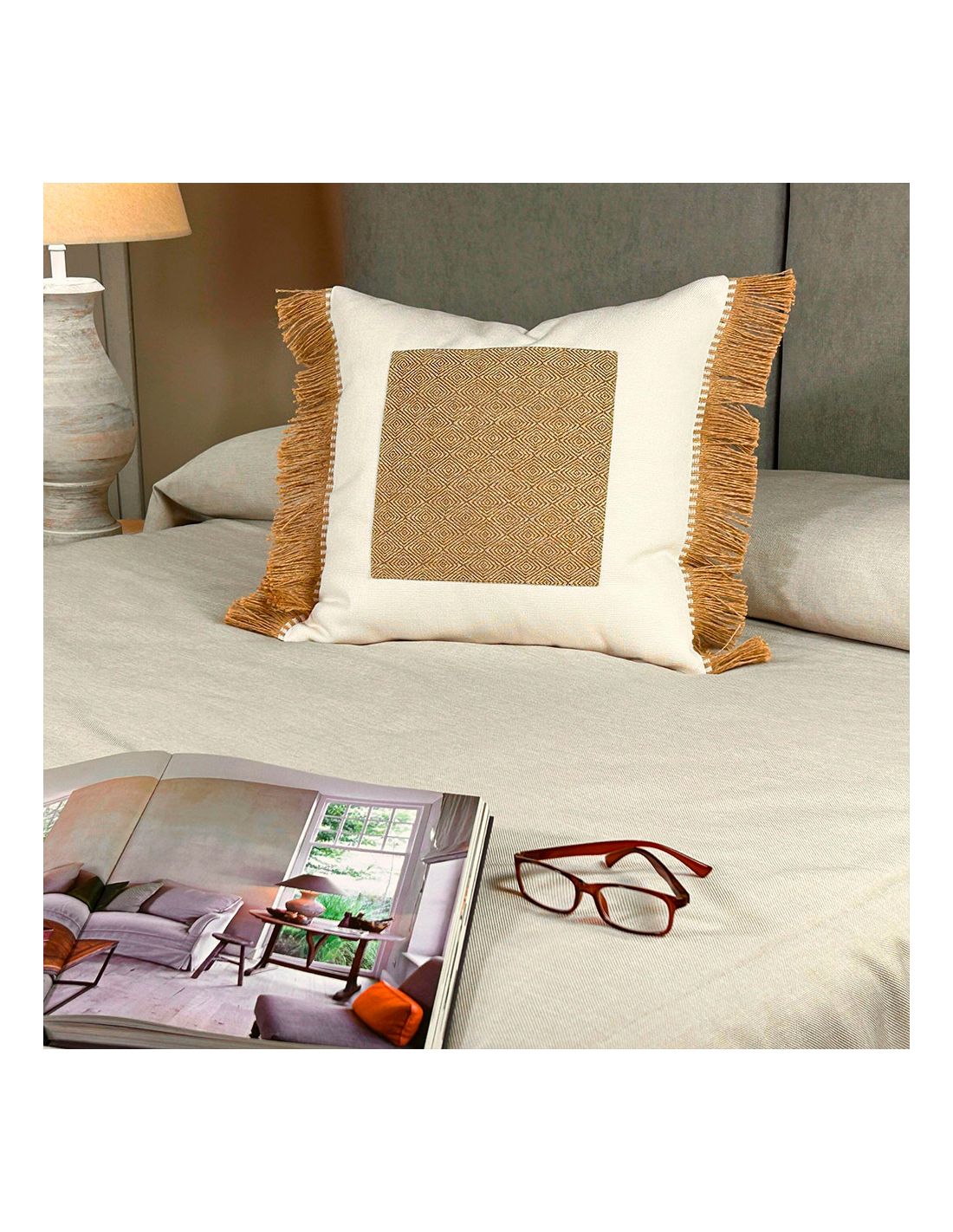 Cojín decorativo beige 50X50 relleno premium incluido centro geométrico camel fleco