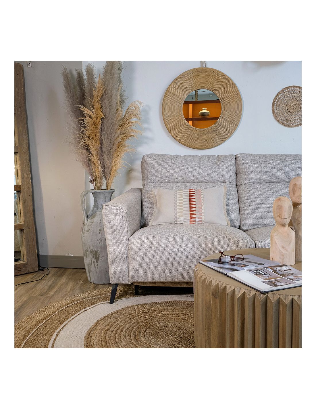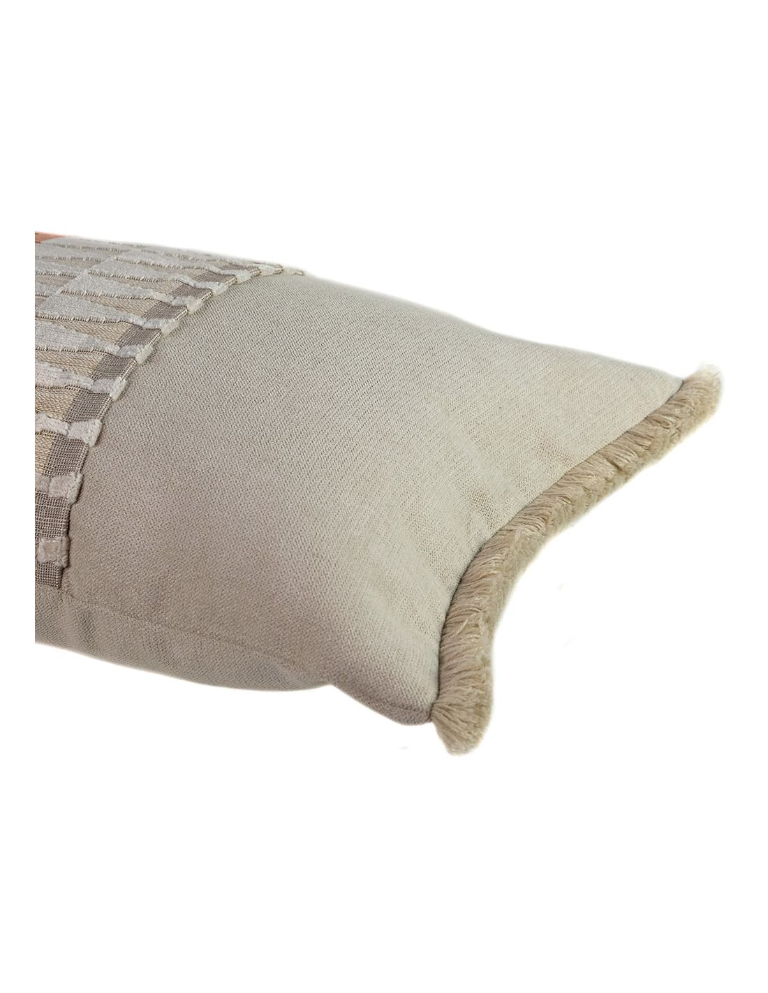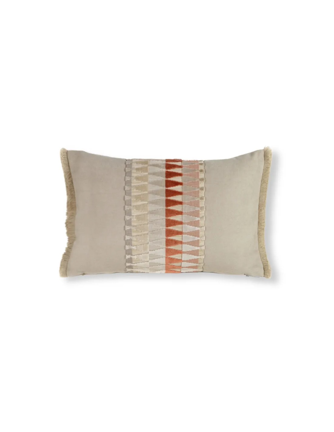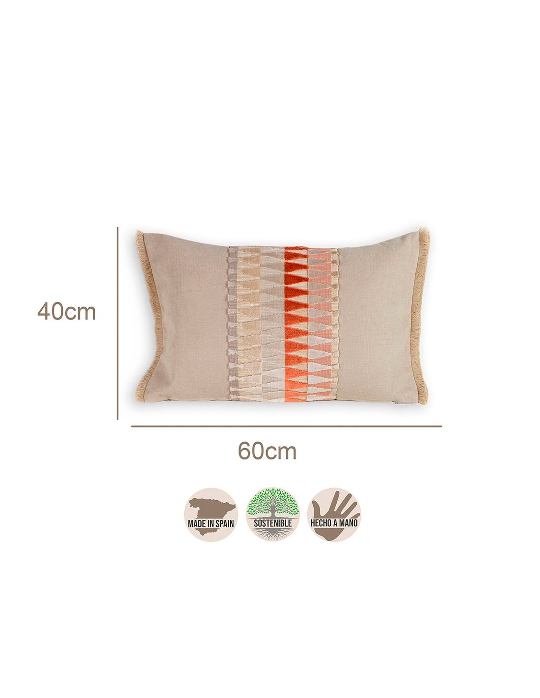 Cojín decorativo gris 60x40 relleno premium incluido banda geométrico triángulos pastel fleco arena