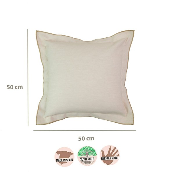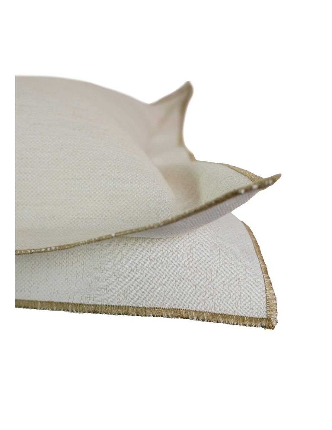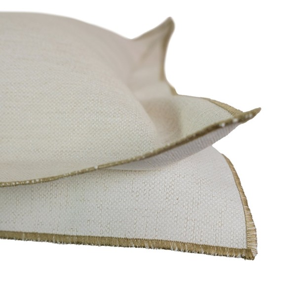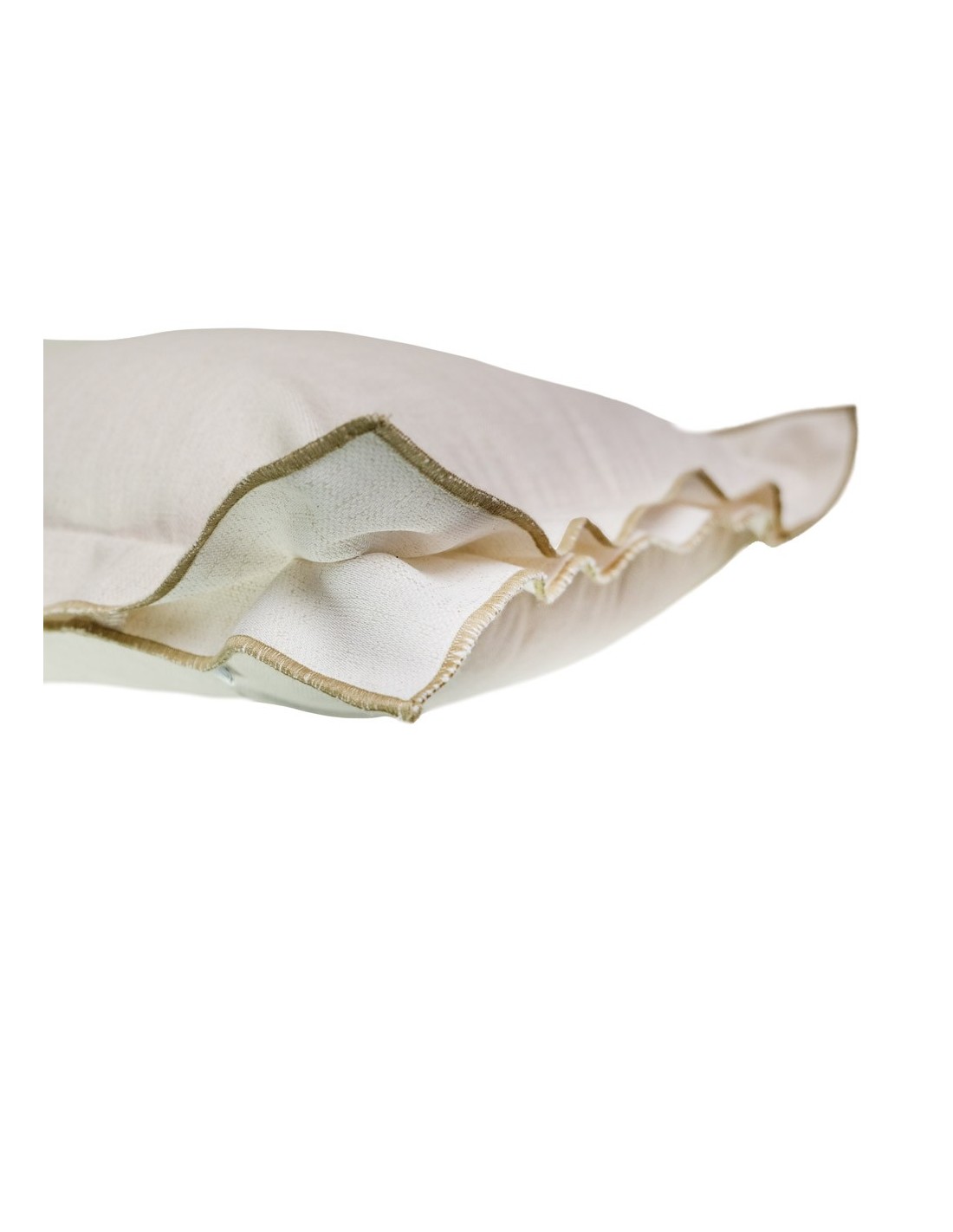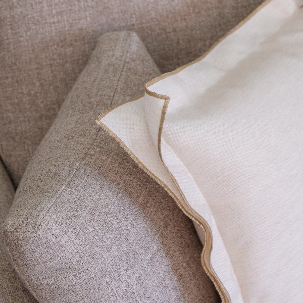 Coussin brisé blanc double tag double 4 cm broderie brun foncé 50x50 remplissage prime