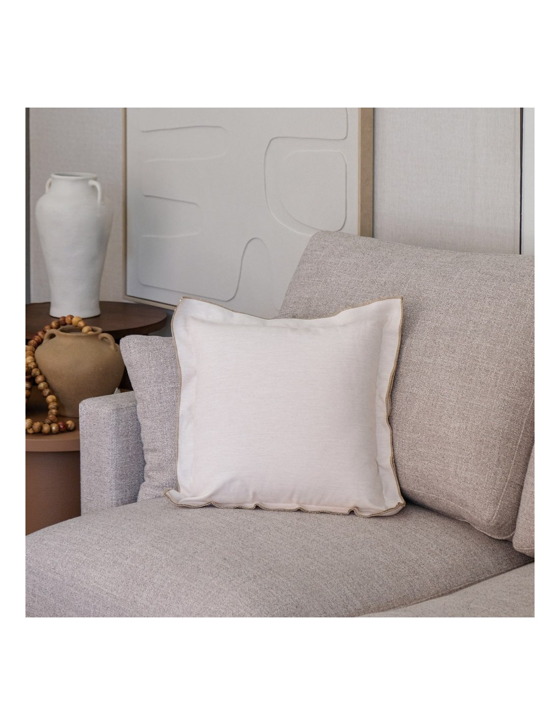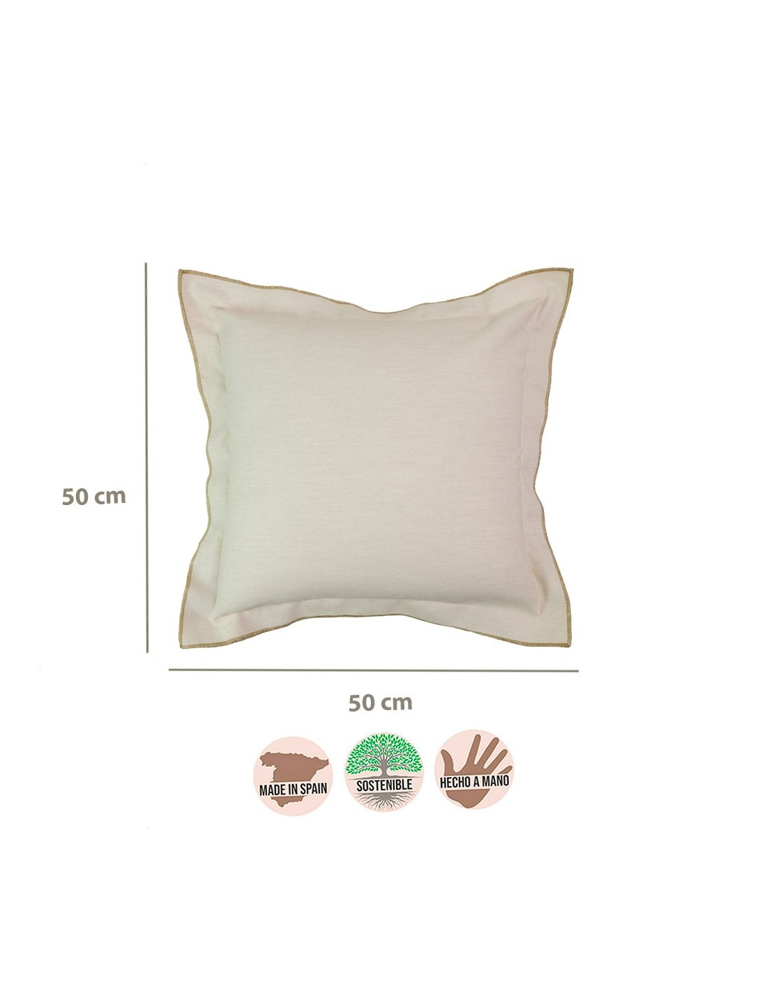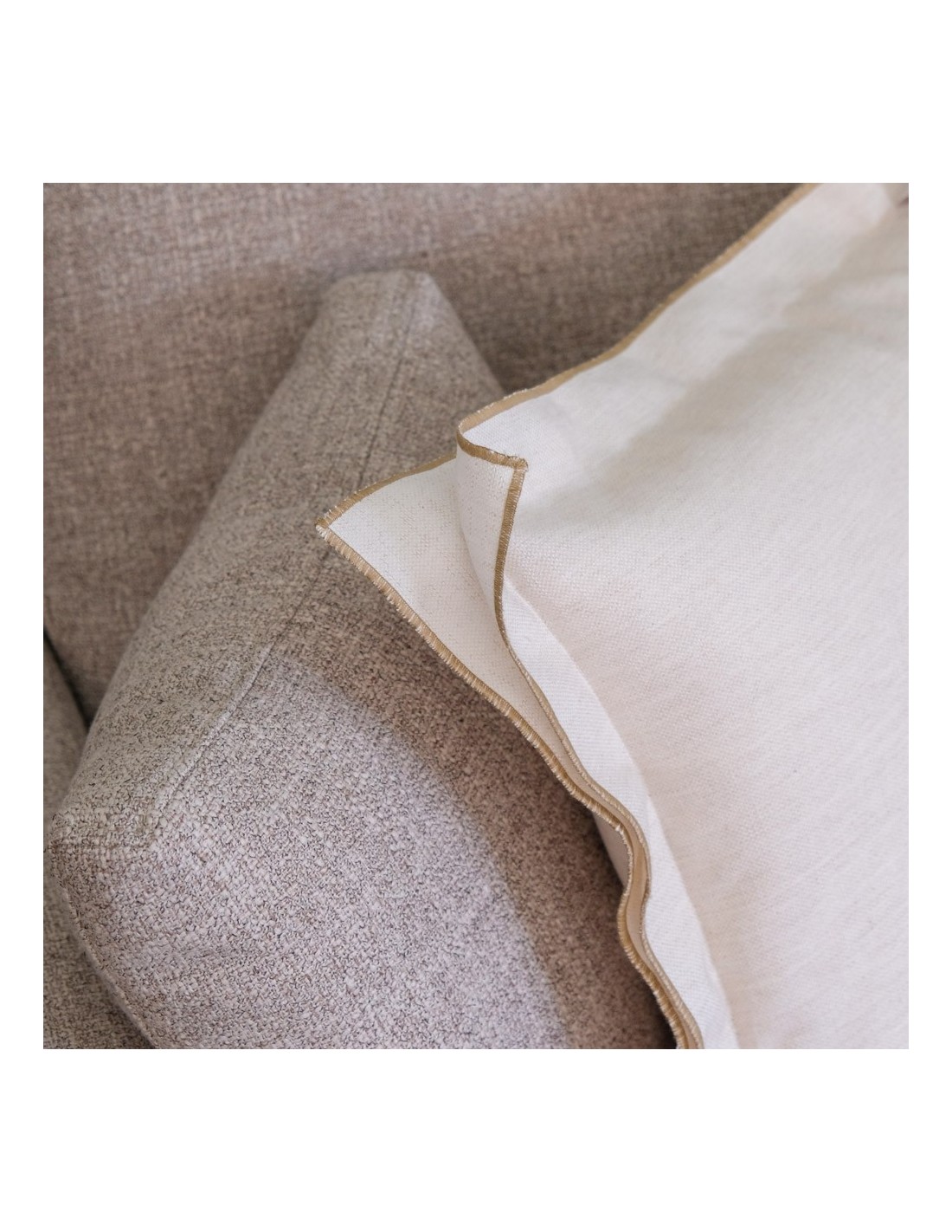 Coussin brisé blanc double tag double 4 cm broderie brun foncé 50x50 remplissage prime