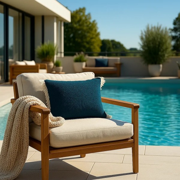 Cojín exterior azul marino bucle flec rizado 60x40 Relleno Premium Incluido