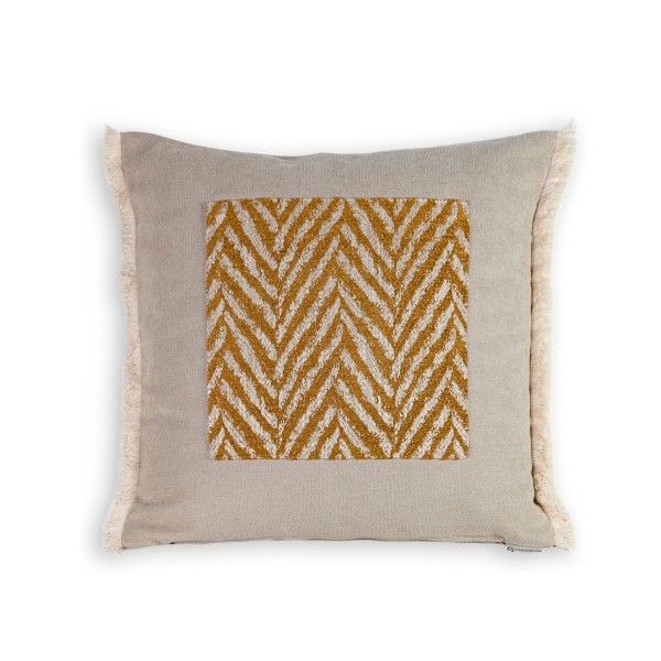 1 coussin 50x50 cm, effet de plumes de remplissage de qualité supérieure inclus, tissu de chenille de couleur sable avec centre d'ocre-spike et coton blanc FLECO. Découvrez le confort suprême avec nos coussins Tapidecor, conçu pour créer une atmosphère unique et exclusive dans votre chambre ou votre salon.