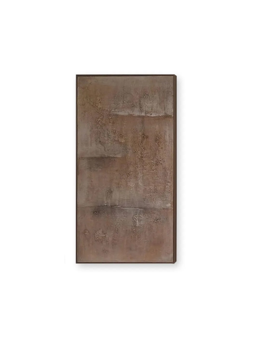 CUADRO PAREJA LIENZO ABSTRACTO BEIGE TOSTADO MARCO ROBLE OSCURO 80X150