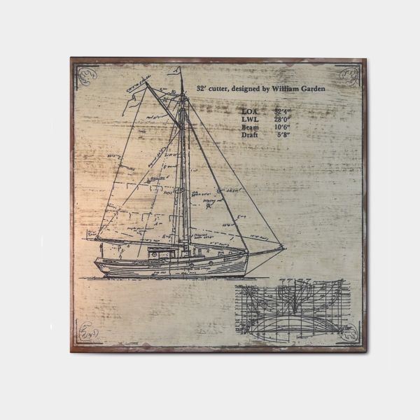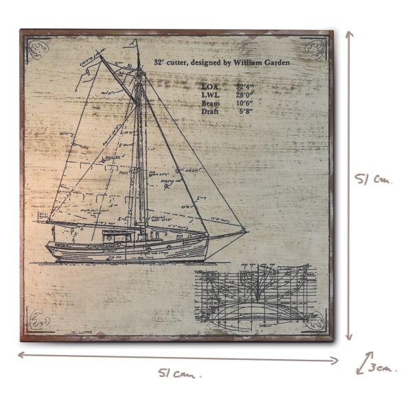 CUADRO DECORATIVO MADERA BEIGE BOCETO BARCO VELERO 51X51