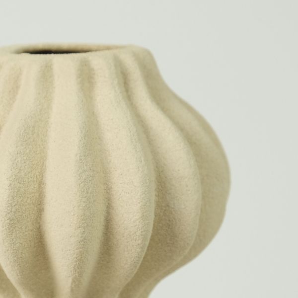 JARRON REDONDO ACANALADO CERAMICA CREMA 12X12X25