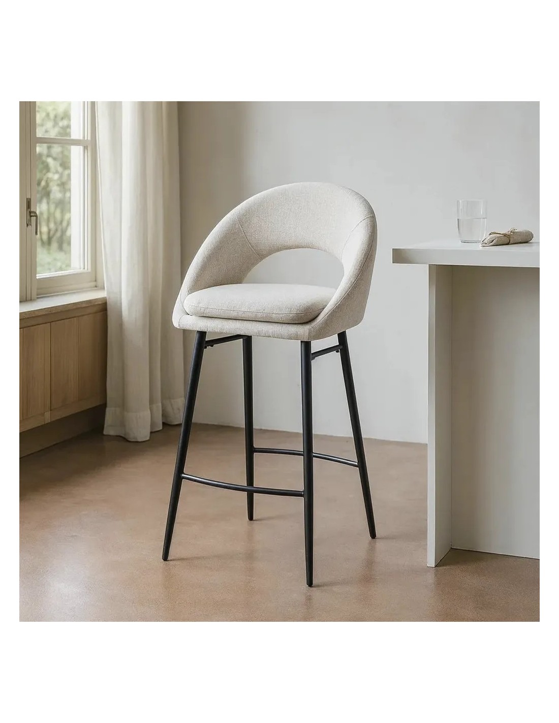 TABURETE TEJIDO CREMA-METAL NEGRO 53X48X100 CM ASIENTO A 75 CM