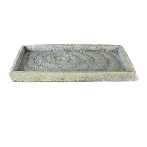 BANDEJA CEMENTO RECTANGULAR GRIS Y CRISTAL AZUL 38X3X23