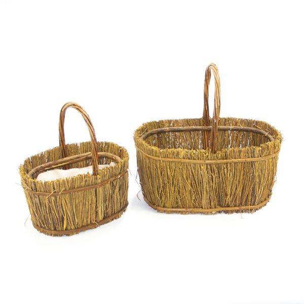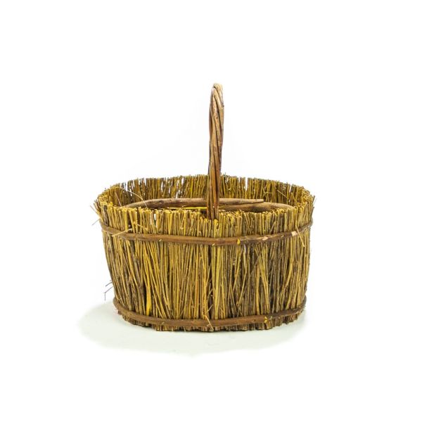 CESTA JARDINERA OVAL MIMBRE FIBRA NATURAL CON ASA 22X14X24