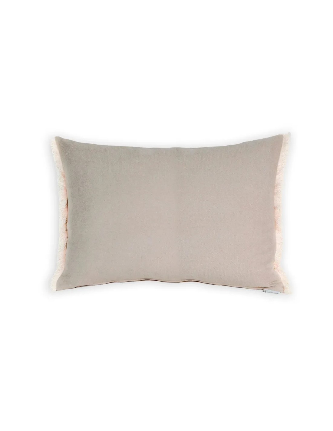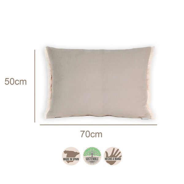 Cojín rectangular sofa cama liso arena relleno pluma fleco blanco 70x50