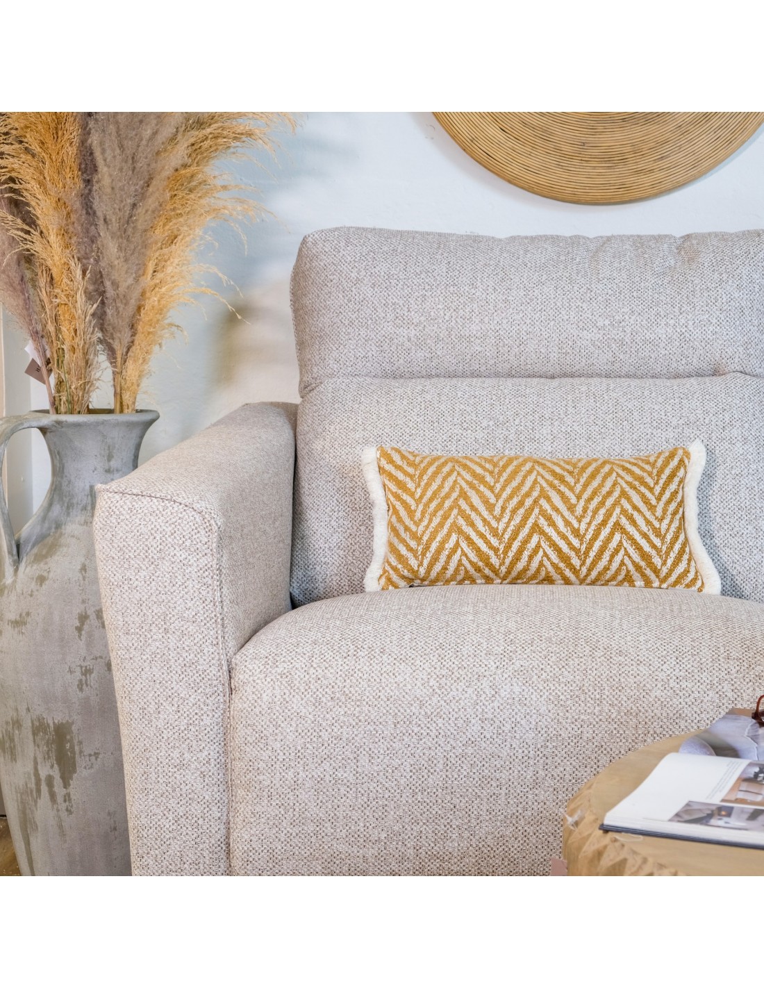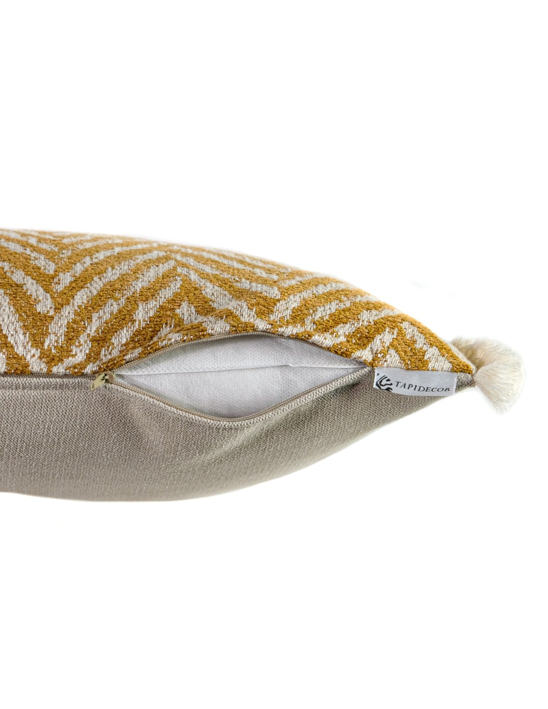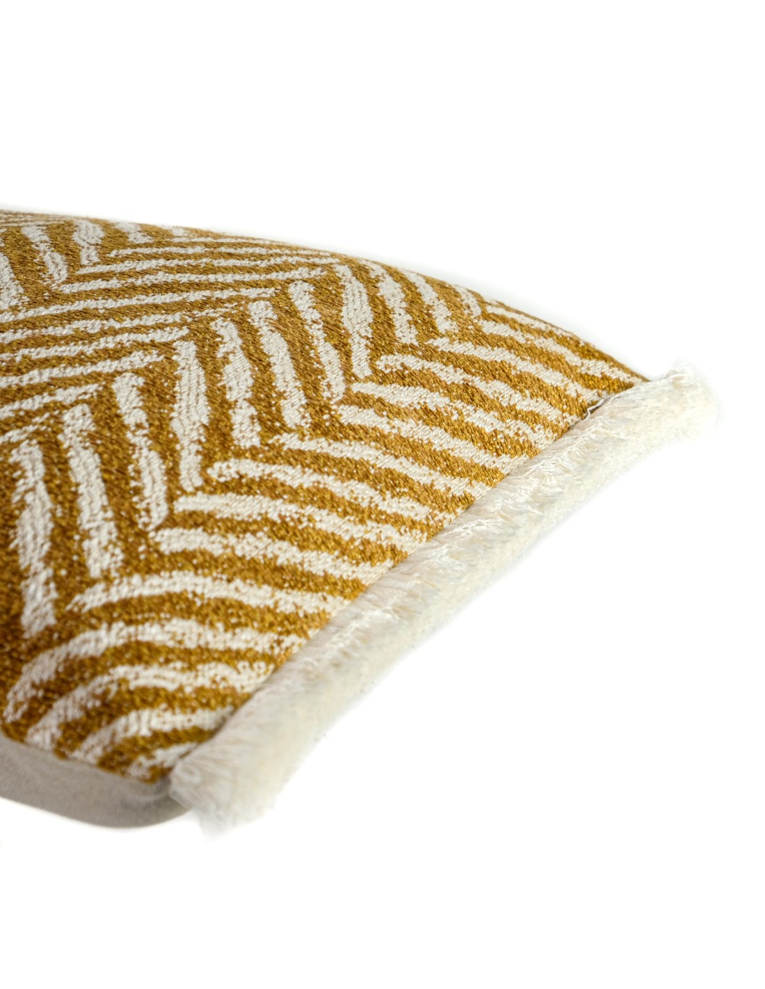 Cojín espiga ocre fleco blanco 50X30 Relleno Premium incluido
