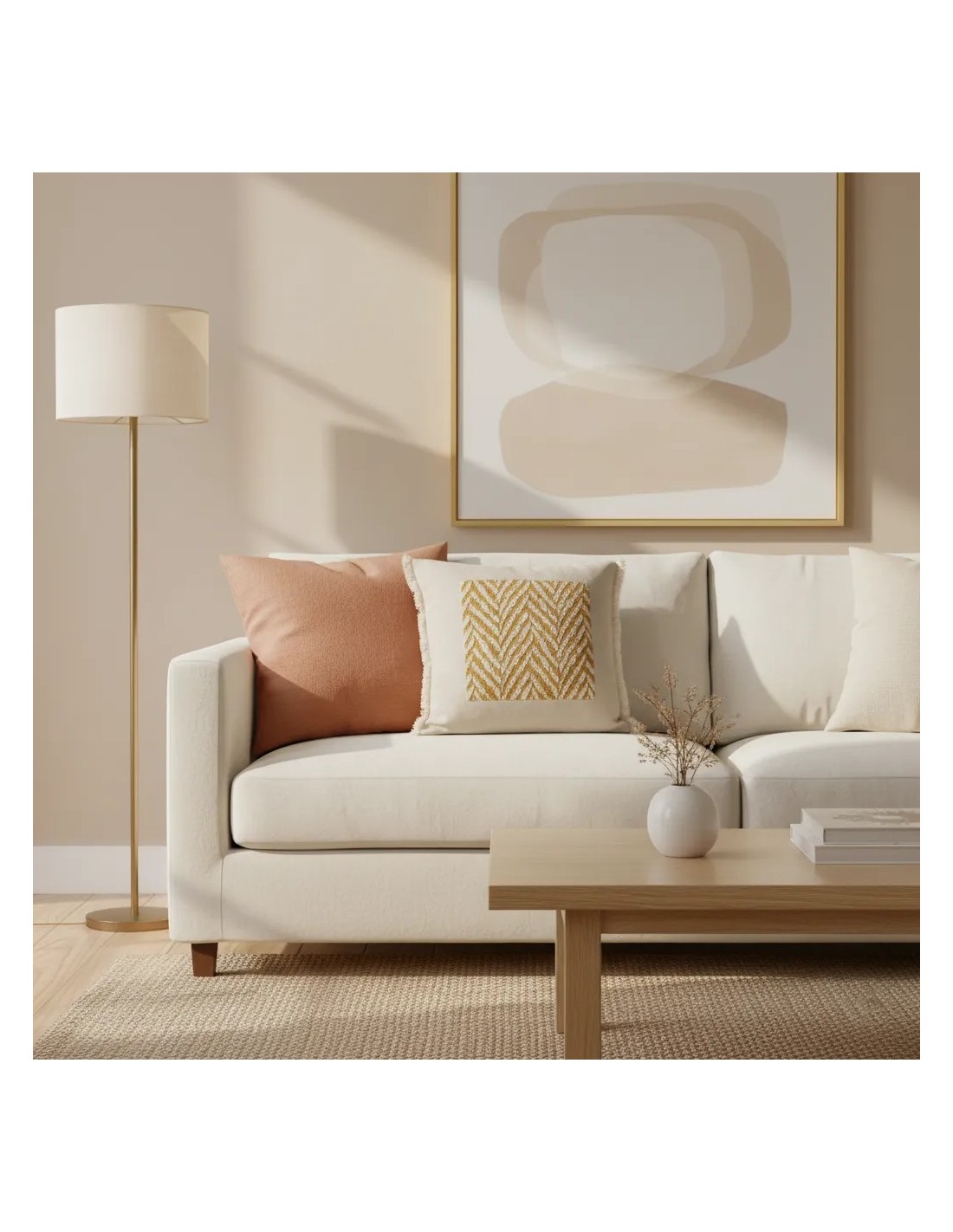Cojín beige centro espiga ocre 50X50 Relleno Premium Incluido