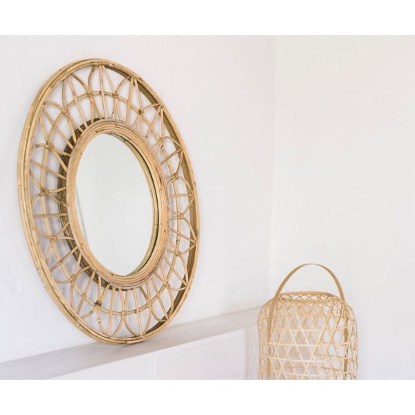 ESPEJO DE RATÁN Y MDF DIÁMETRO 70 CM